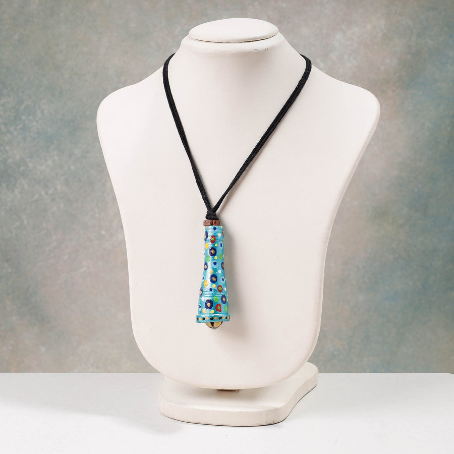 Blue handcrafted and hand-painted terracotta necklace from Bishnupur, West Bengal. Oil & acrylic colours used in handpainted. Terracotta is a type of earthenware that is made from natural clay.
