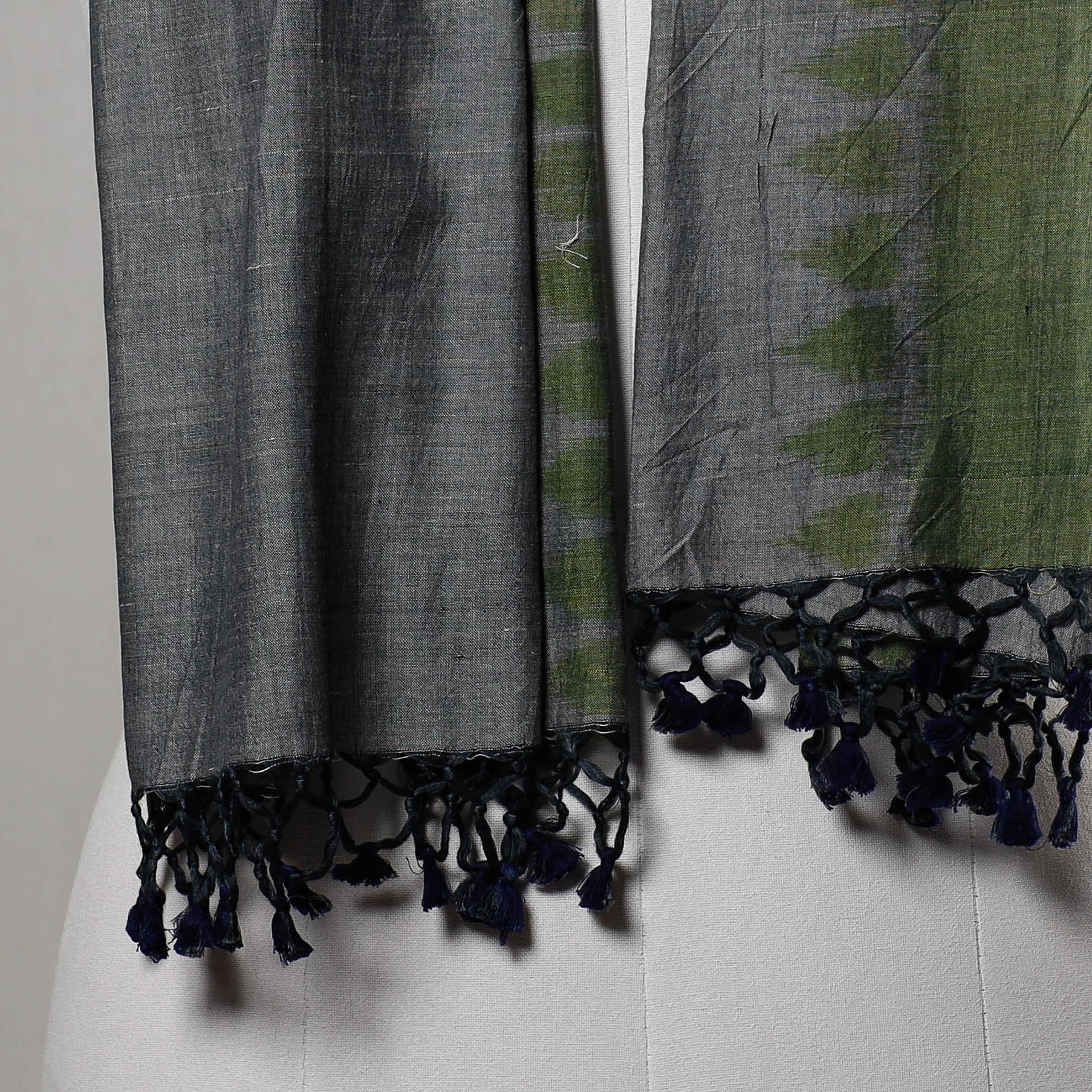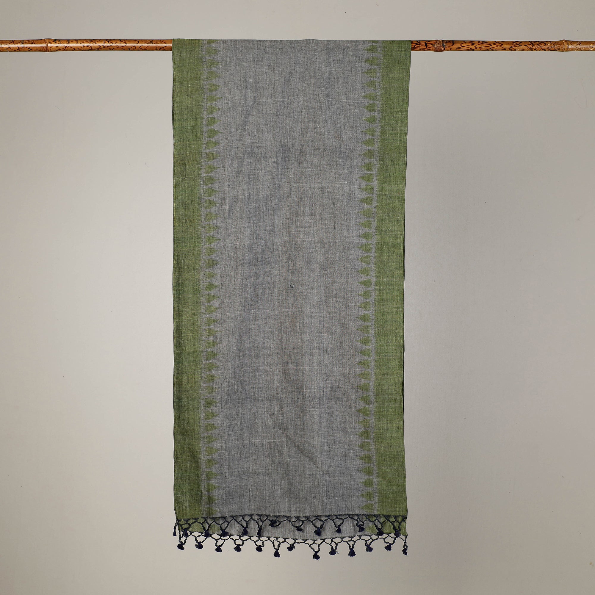 Fine quality pure handloom maniabandha ikat cotton stole with tassels woven by the master weavers of Maniabandha, Odisha. Ikat (Ikkat) is a dyeing technique used to pattern textiles that employs a resist dyeing process similar to tie-dye on either the warp or weft fibres prior to dyeing. Ikat has lovely patterns and is world famous for its extremely beautiful colors, textures, and designs. Indian Ikat is always admired by fashion designers around the world.