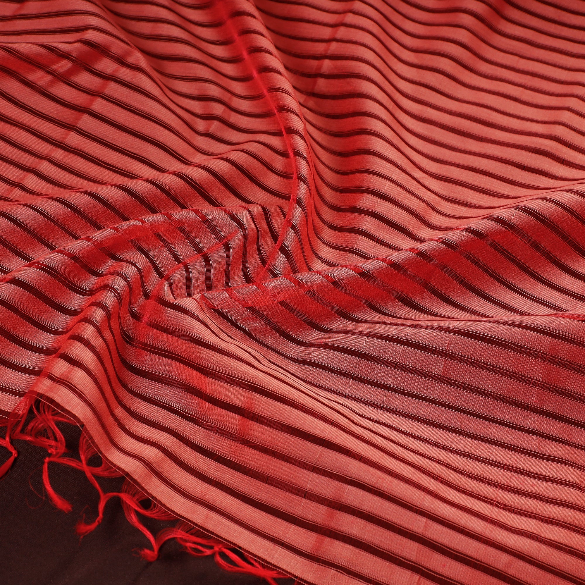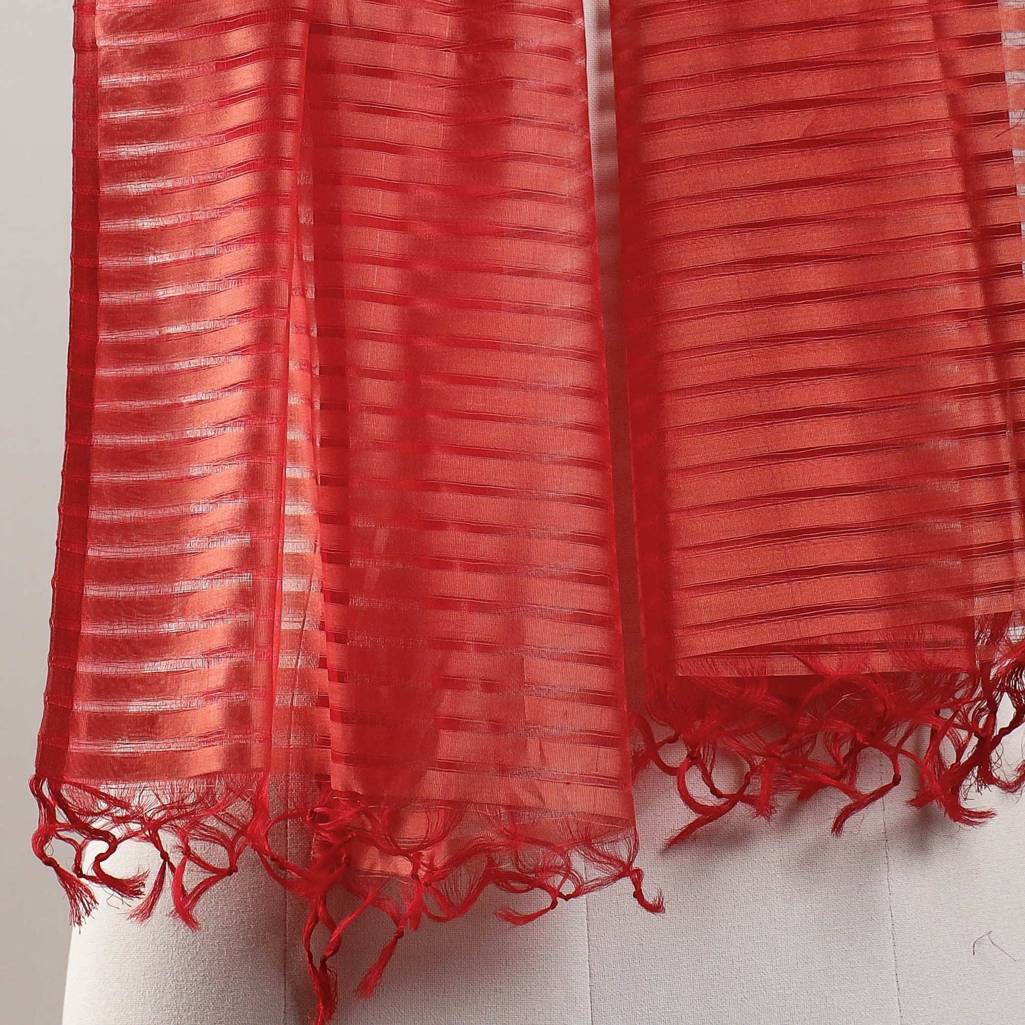 Original maheshwari handloom cotton stole with tassels by master-weaver Gulrez & Nasir Ansari from Maheshwar. Its lightweight and sheer texture giving an exquisite grace. The weaving tradition is practiced in their family for many generations.