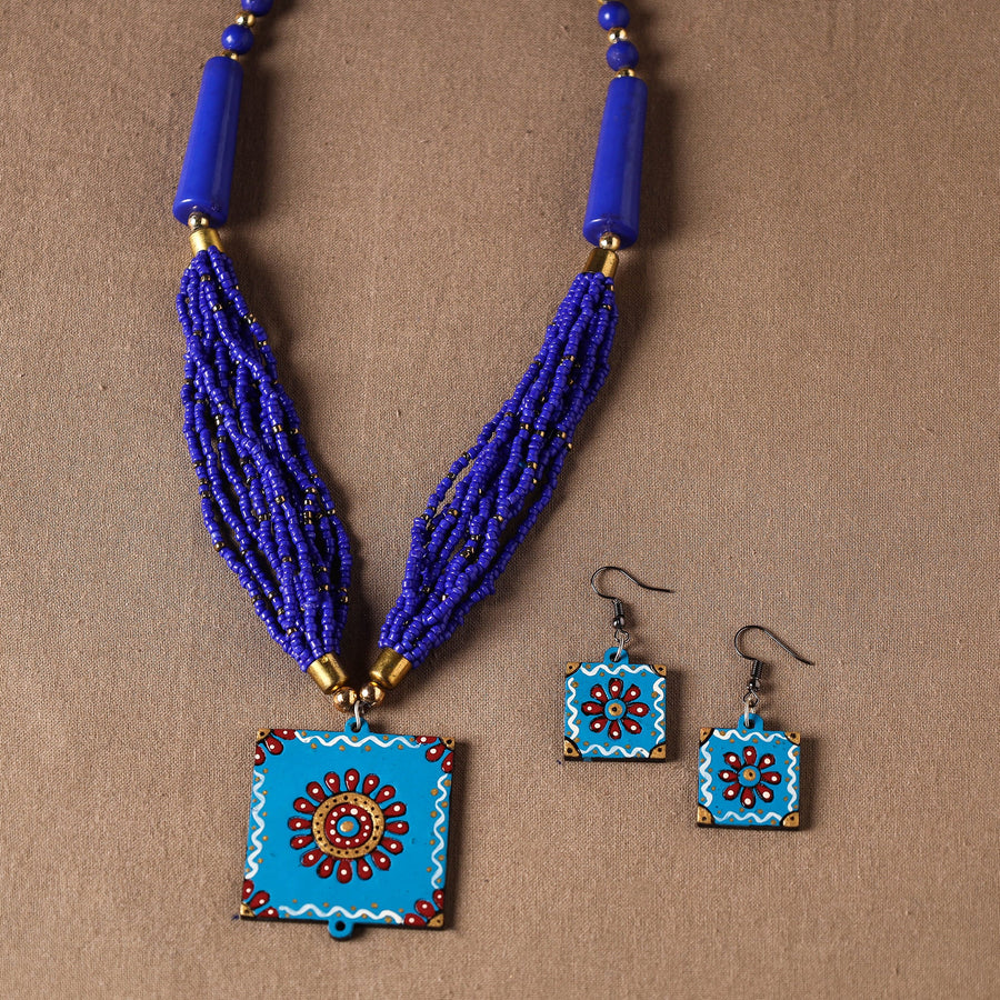 Beautifully blue handcrafted necklace set made of mdf wood with tikuli handpainted miniature painting on both sides. (oil colours used) Can match any type of outfit.
