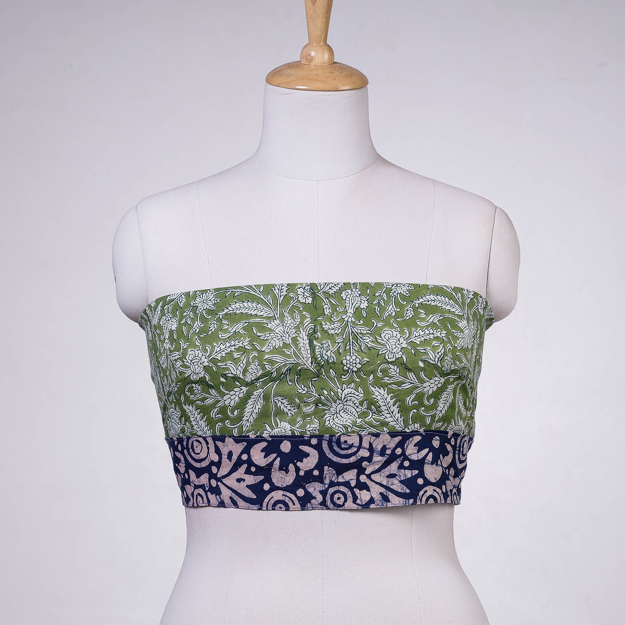 Fine quality sanganeri block printing blouse material made from mix & matched cotton fabrics & textured with handmade textiles of India. This mix & match blouse material will go with almost all of your sarees & enhance your look.