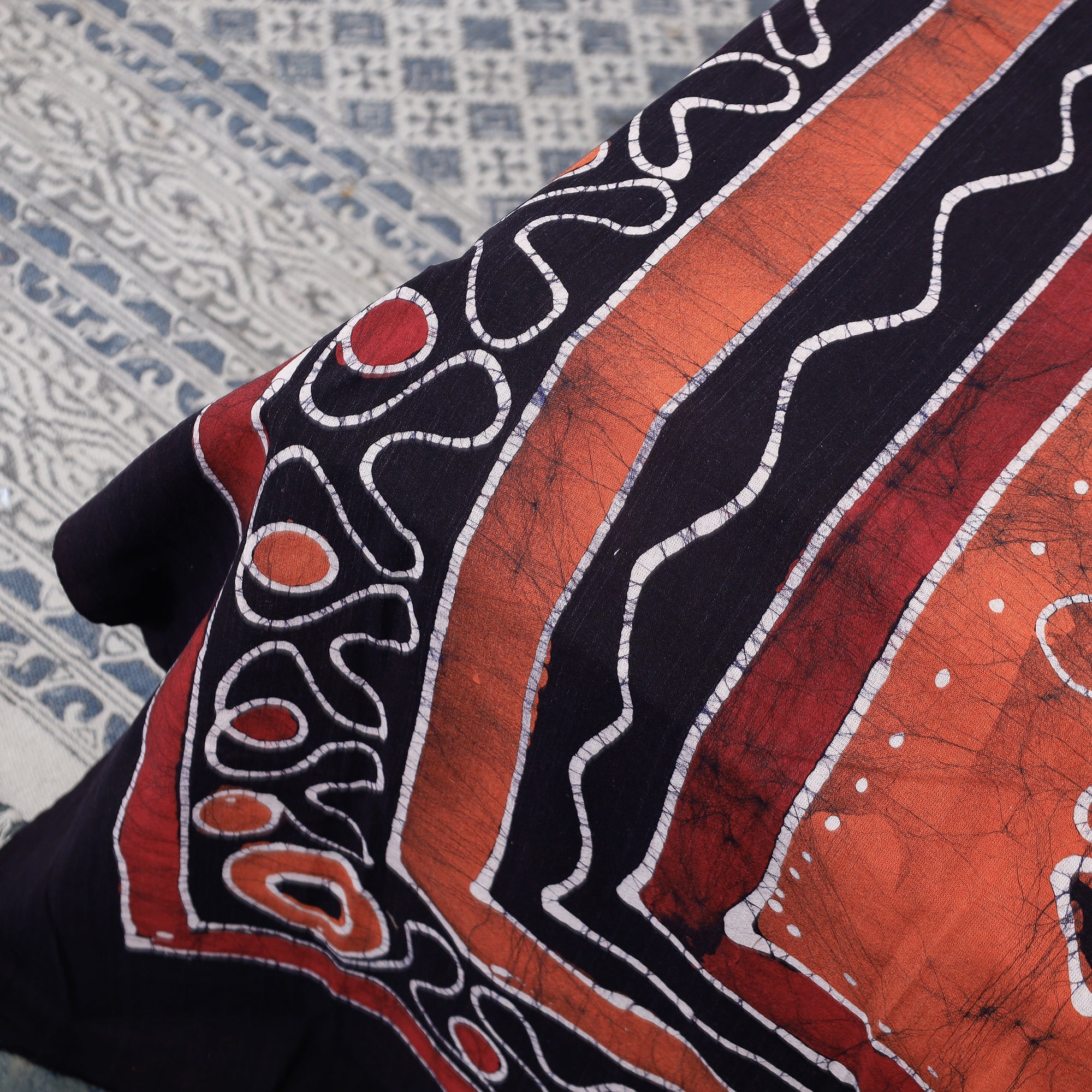 Hand batik printed cotton double bed cover with pillow covers from Ujjain, Madhya Pradesh. Batik is a technique of wax-resist dyeing applied to whole cloth, or cloth made using this technique. The traditional designs and motifs in Indian batik are often passed down from one generation to another.