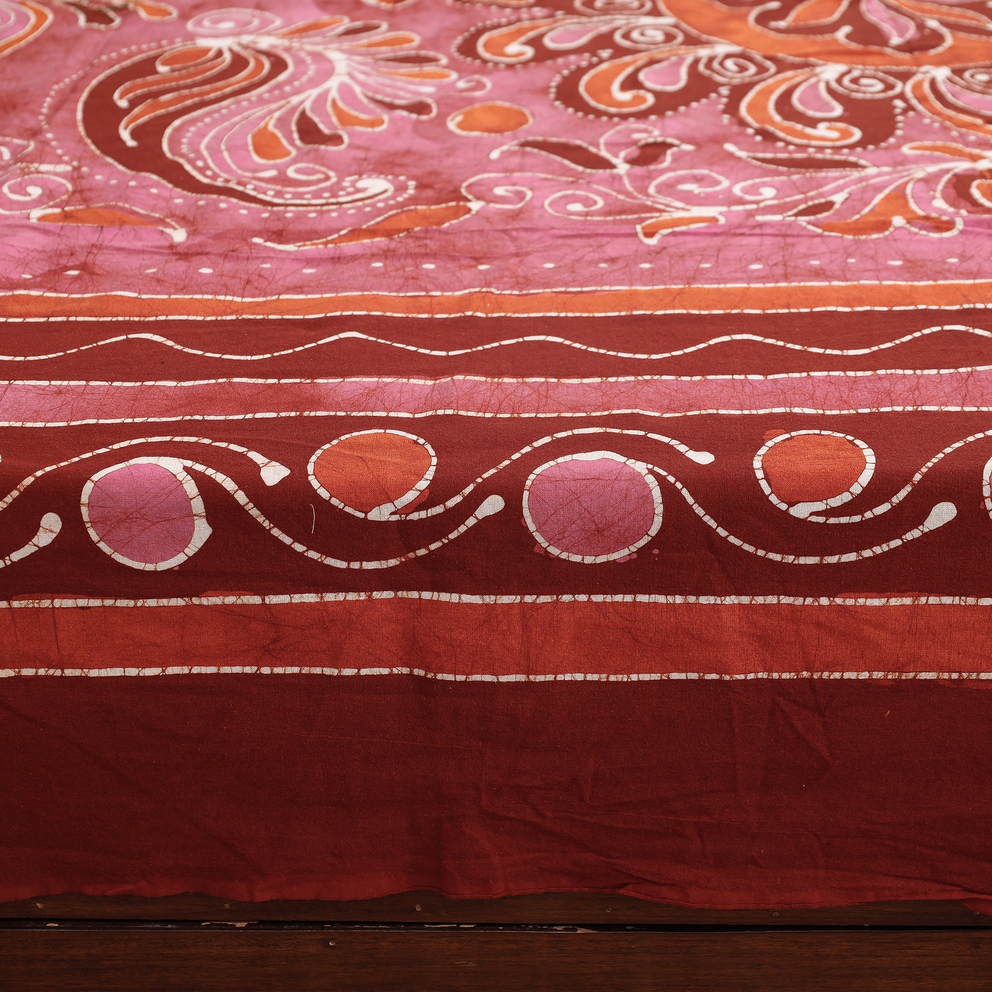Batik is a very famous technique of wax-resist dyeing applied to whole cloth. The traditional designs and motifs in Indian batik are exceptional. It is a type of resist printing process wherein wax is applied to the fabric in specific areas.