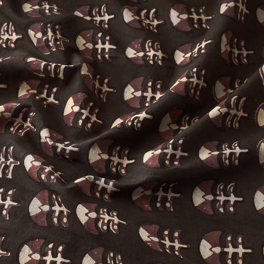 Brown - Akola Block Printed Cotton Blouse Piece 128