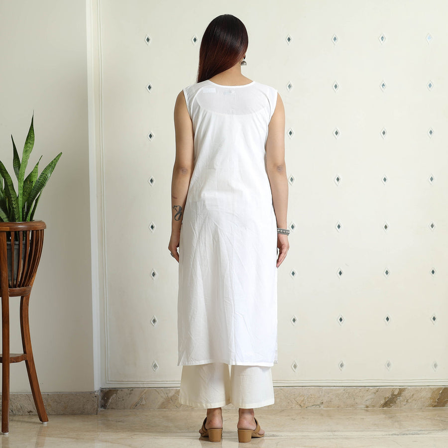 Look and feel beautiful in this uniquely designed cotton sleeveless long kurta with side pocket. This cotton kurta makes you comfortable with ease all day long. This kurta is perfect for your daily outing and for a special occasion.