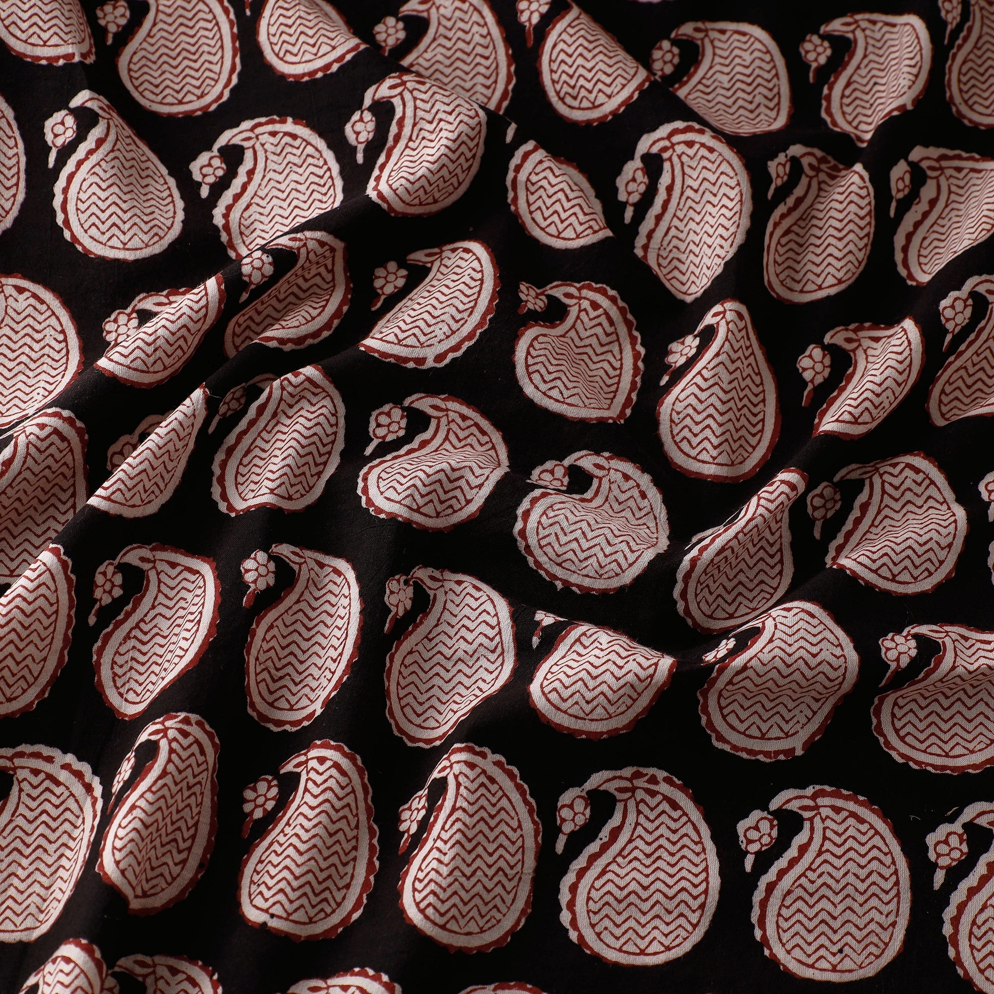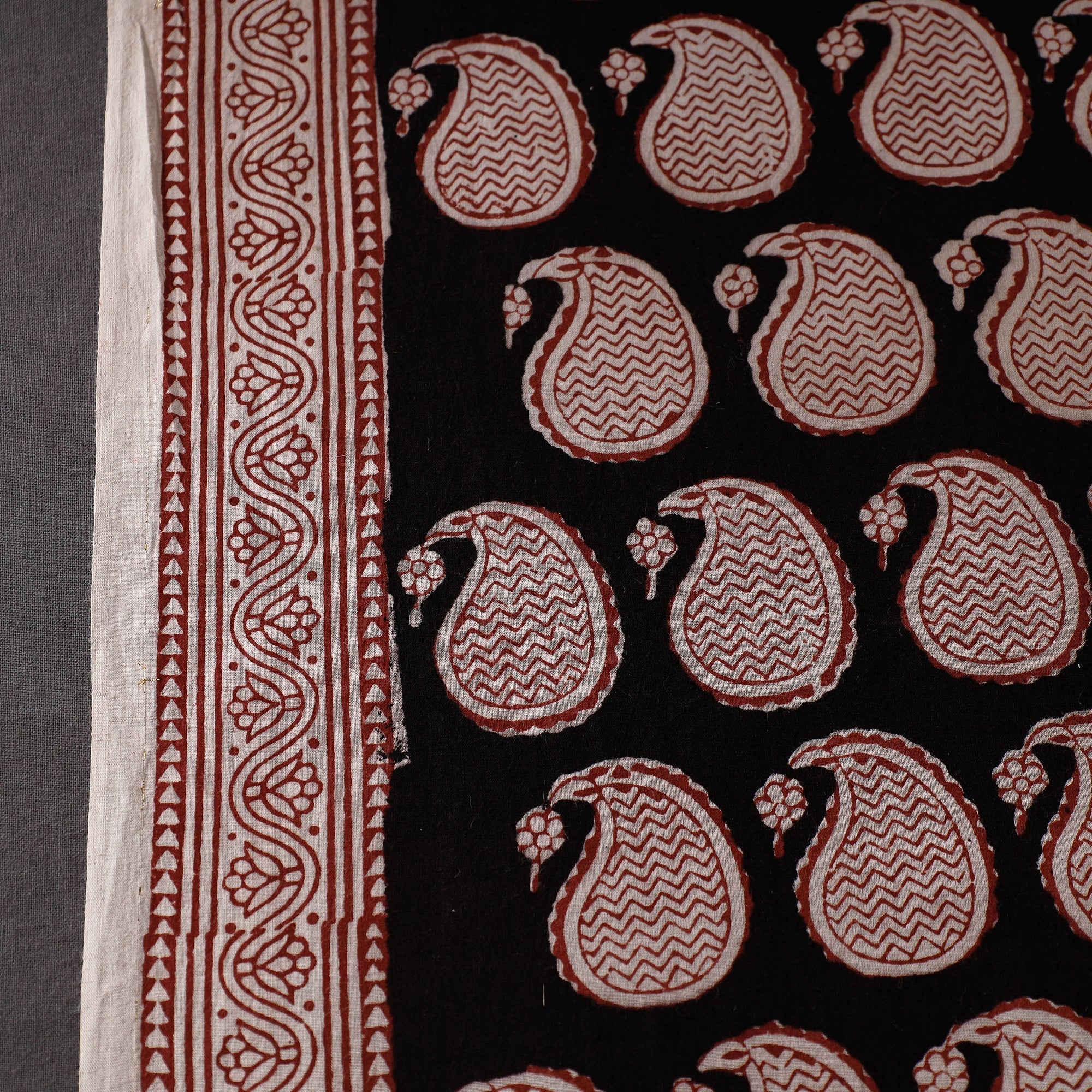 Fine quality black bagh block printing cotton fabric, made using natural dyes through traditional process of hand block printing by Umar Faruk Khatri practiced in Bagh, the Dhar district of Madhya Pradesh.