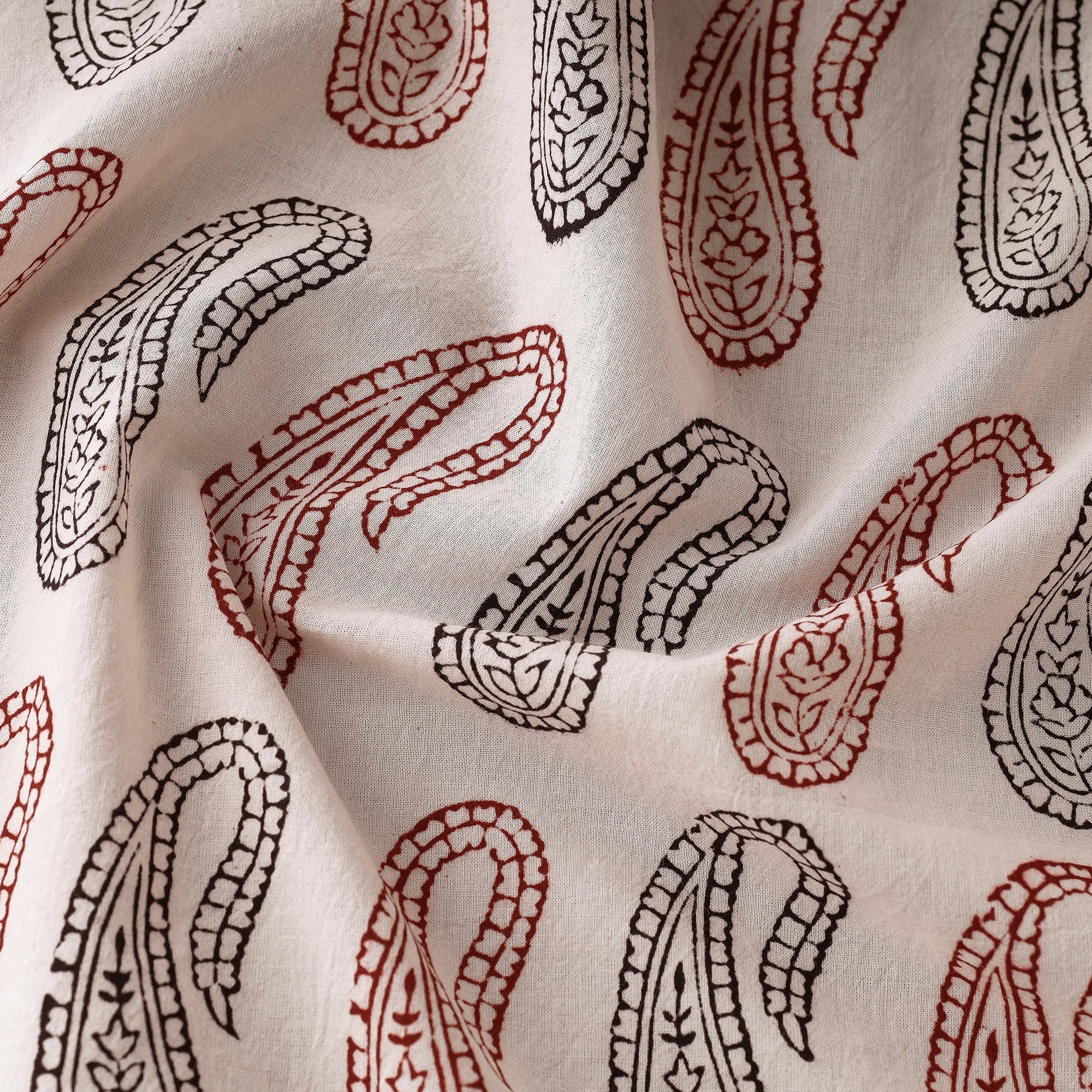 Fine quality white bagh block printed cotton fabric, made using natural dyes through traditional process of hand block printing by Umar Faruk Khatri practiced in Bagh, the Dhar district of Madhya Pradesh.