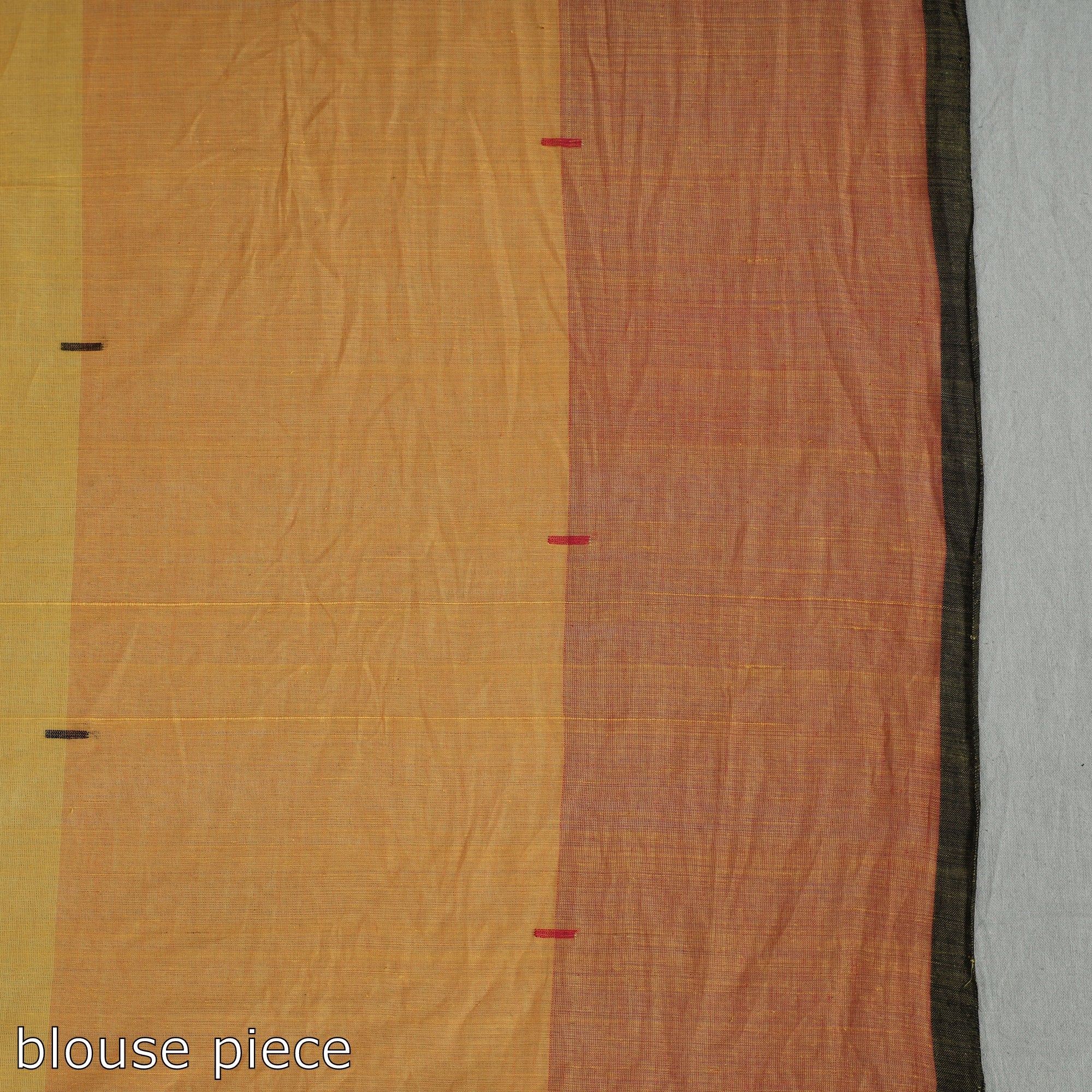 Fine quality jamdani buti handloom cotton saree with tassels made using azo free dye colours from the Srikakulam District of Andhra Pradesh. The handloom experience (soft, comfortable and durable) is due to the human handling of the yarn in the weaving process. As a result, yarn and the fabric are much less stressed and damaged. Hand woven cotton is known for its breathability as compared to mill made cotton. This implies that it allows more air penetration making it cooler, softer and more absorbent. It keeps you cooler in summers and warm in winters.
