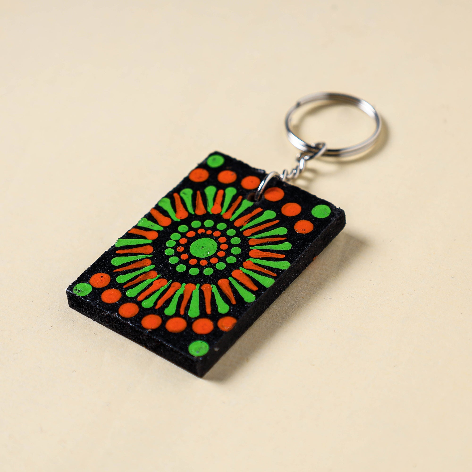 Handmade dot Mandala art keychain is hand-painted on MDF wood with waterproof paints. Mandala is a geometric symbol configuration. Mandala 1st appeared in the 4th century in India, inside Buddhist monasteries. Buddhist monks created mandala because of the meditative process that helped their minds become more enlightened. A mandala generally represents the spiritual journey, strating from the outside to the inner core through the layers. Mandala have been used as art therapy. It is also known as the "art of relaxation. Mandala art is both therapeutic and symbolic.