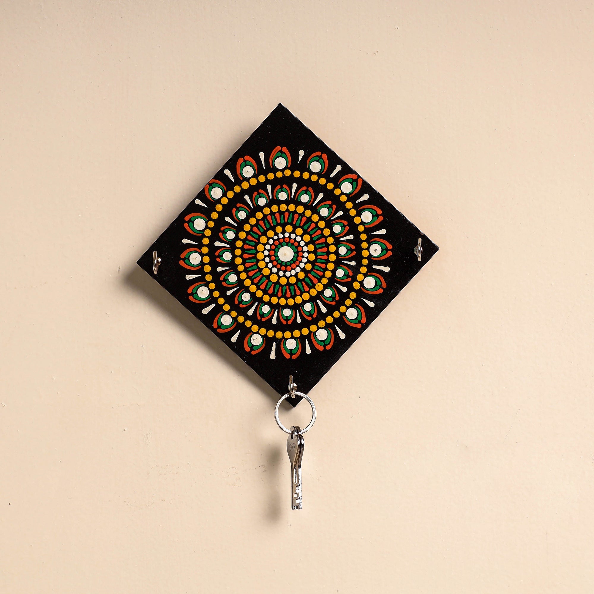 Handmade dot Mandala art keyholder is hand-painted on MDF wood with waterproof paints. Mandala is a geometric symbol configuration. Mandala 1st appeared in the 4th century in India, inside Buddhist monasteries. Buddhist monks created mandala because of the meditative process that helped their minds become more enlightened. A mandala generally represents the spiritual journey, strating from the outside to the inner core through the layers. Mandala have been used as art therapy. It is also known as the "art of relaxation. Mandala art is both therapeutic and symbolic.