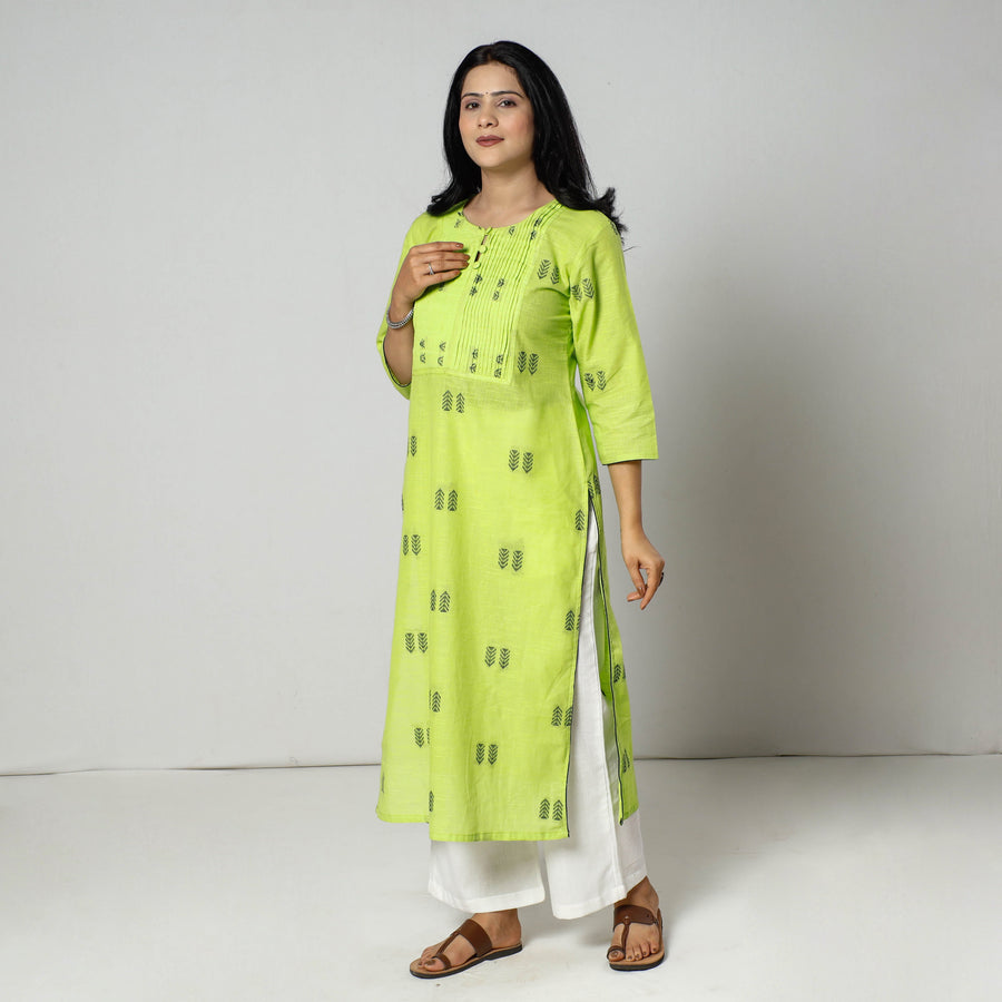 Look and feel beautiful in this uniquely designed jacquard cotton pintuck long Kurta with one side pocket. This cotton Kurta makes you comfortable with ease all day long.