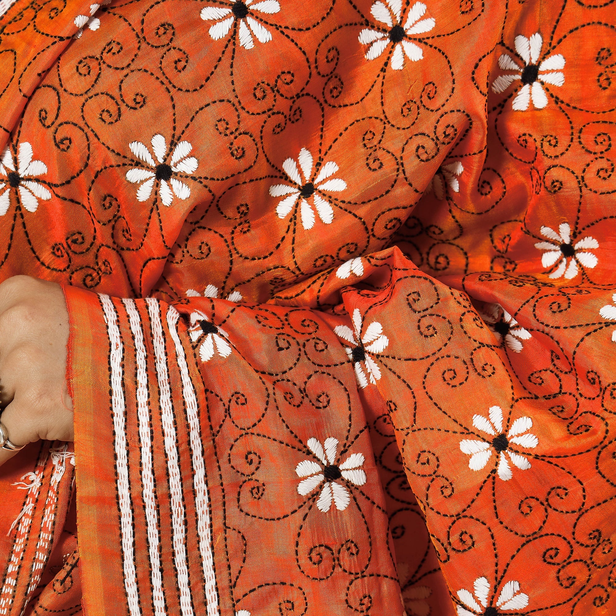 | Material | Fine quality bengal kantha embroidery pure tussar silk handloom dupatta, designed with contemporary patterns & has been hand embroidered using West Bengal's traditional craft technique of Kantha. Tussar silk is known for its unique texture, sheen of silk and feel of cotton A perfect blend of both worlds completely suitable for all weathers. |