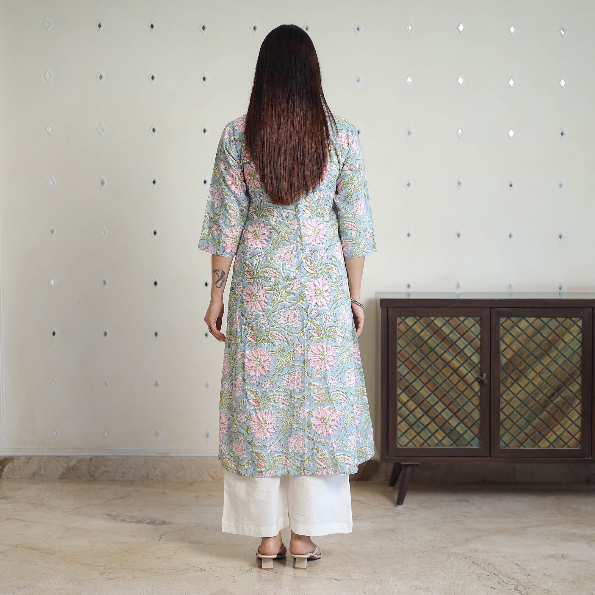 Embrace the timeless beauty of this blue block printed cotton straight sanganeri kurta, crafted by skilled artisans. made from cotton ensures comfort throughout the day, while the elegant Sanganeri print adds a touch of traditional artistry. With a convenient side pocket and a relaxed fit, this kurta is perfect for both casual outings and special occasions.