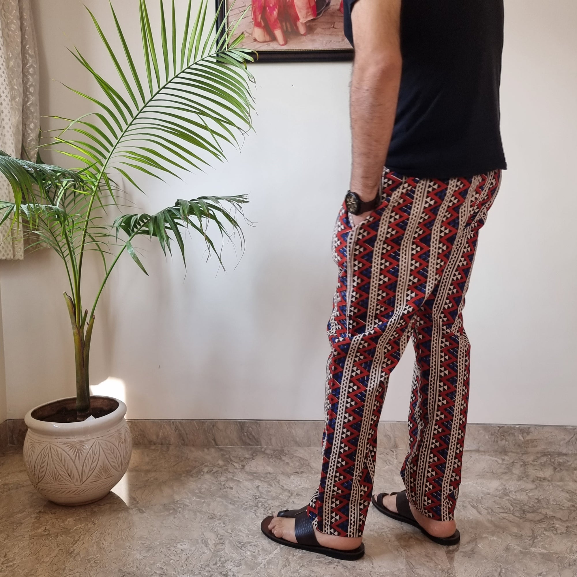 Feel and look beautiful in this bagru block printed cotton elasticated men's Pyjama with two side pockets. This cotton pyjama makes you feel comfortable and stylish all day long. This pyjama is perfect for your daily outings.