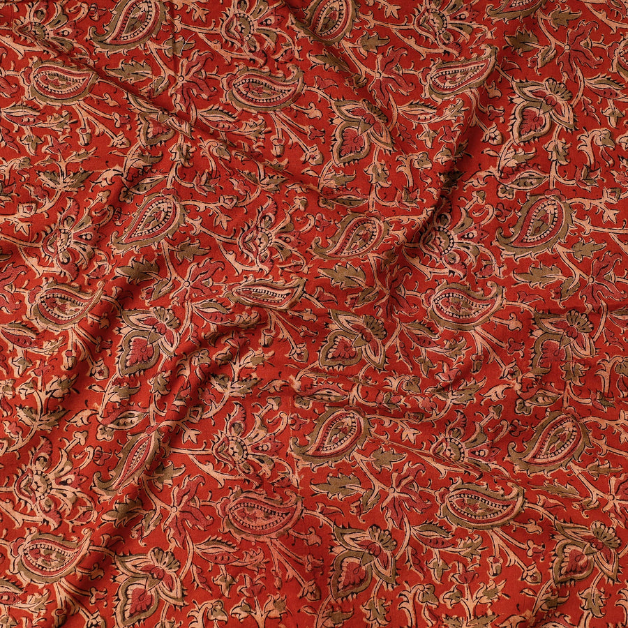 Fine quality red kalamkari block printed cotton precut fabric made using natural dyes through traditional process of hand block printing practised by the artisans of Andhra Pradesh. Kalamkari is the earliest and more complex techniques of block-printing. Showcasing an assortment of hand block printed motifs inspired by traditional kalamkari painting.
