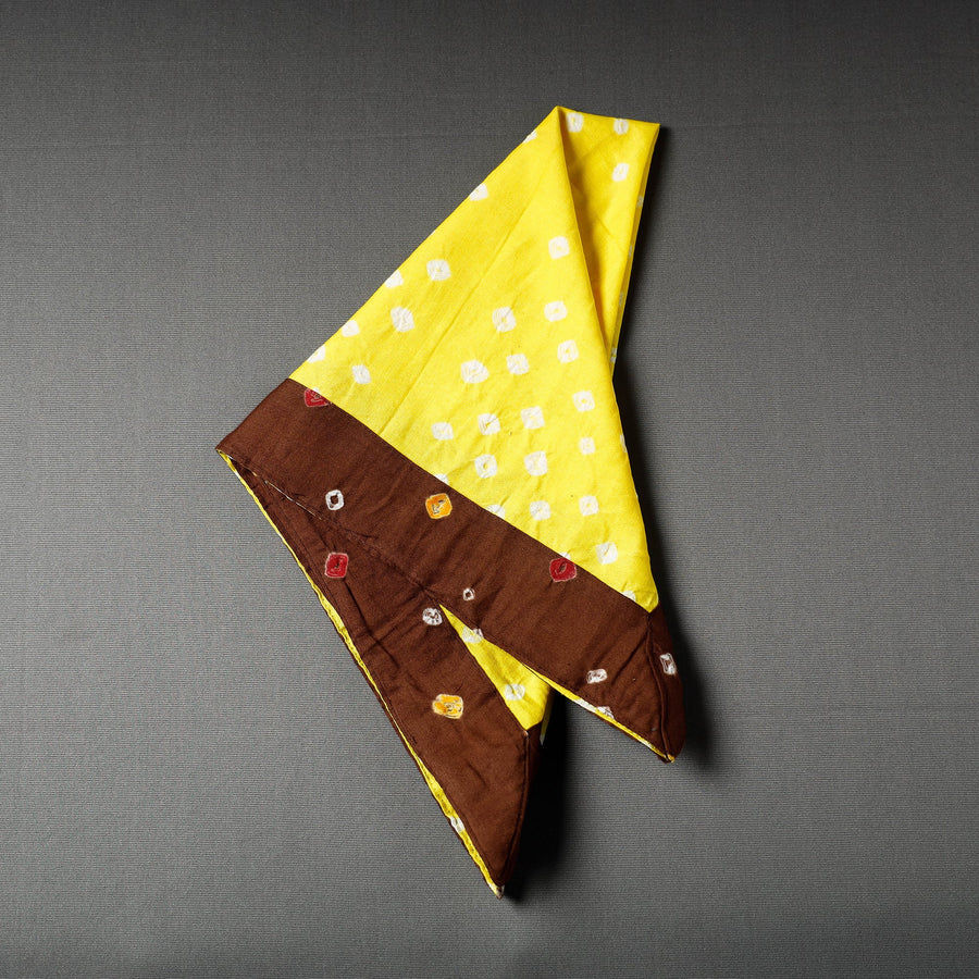 Fine quality bandhani tie-dye cotton bandana, featuring majestic bandhani pattern, tie-dyed using the traditional technique practised by the artisans of Kutch. The art of Bandhani (Bandhej) is highly skilled process. The technique involves dyeing a fabric which is tied tightly with a thread at several points.