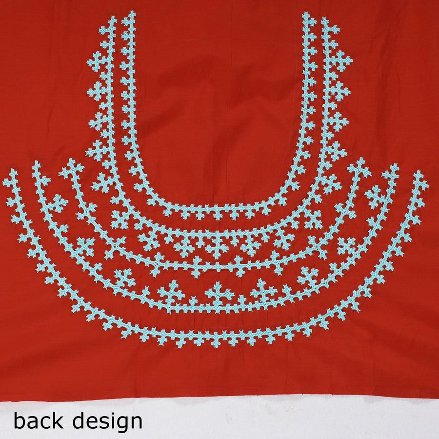Fine quality red kutch embroidery silk cotton blouse piece. The kutch embroidery is a handicraft and textile signature art tradition of the tribal community of kutch district in Gujarat. This embroidery with its rich designs has made a notable contribution to the Indian embroidery traditions.