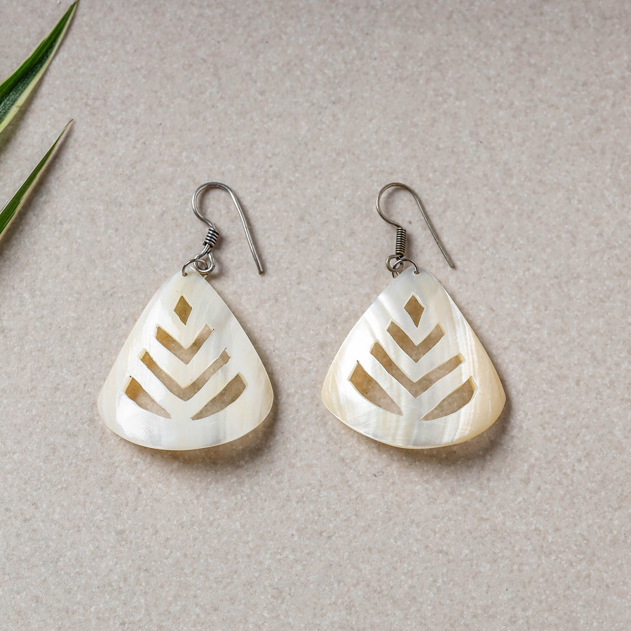 White handcrafted natural seashell earrings. These unique mother of pearl shell earrings are stunning and perfect for any occasion.