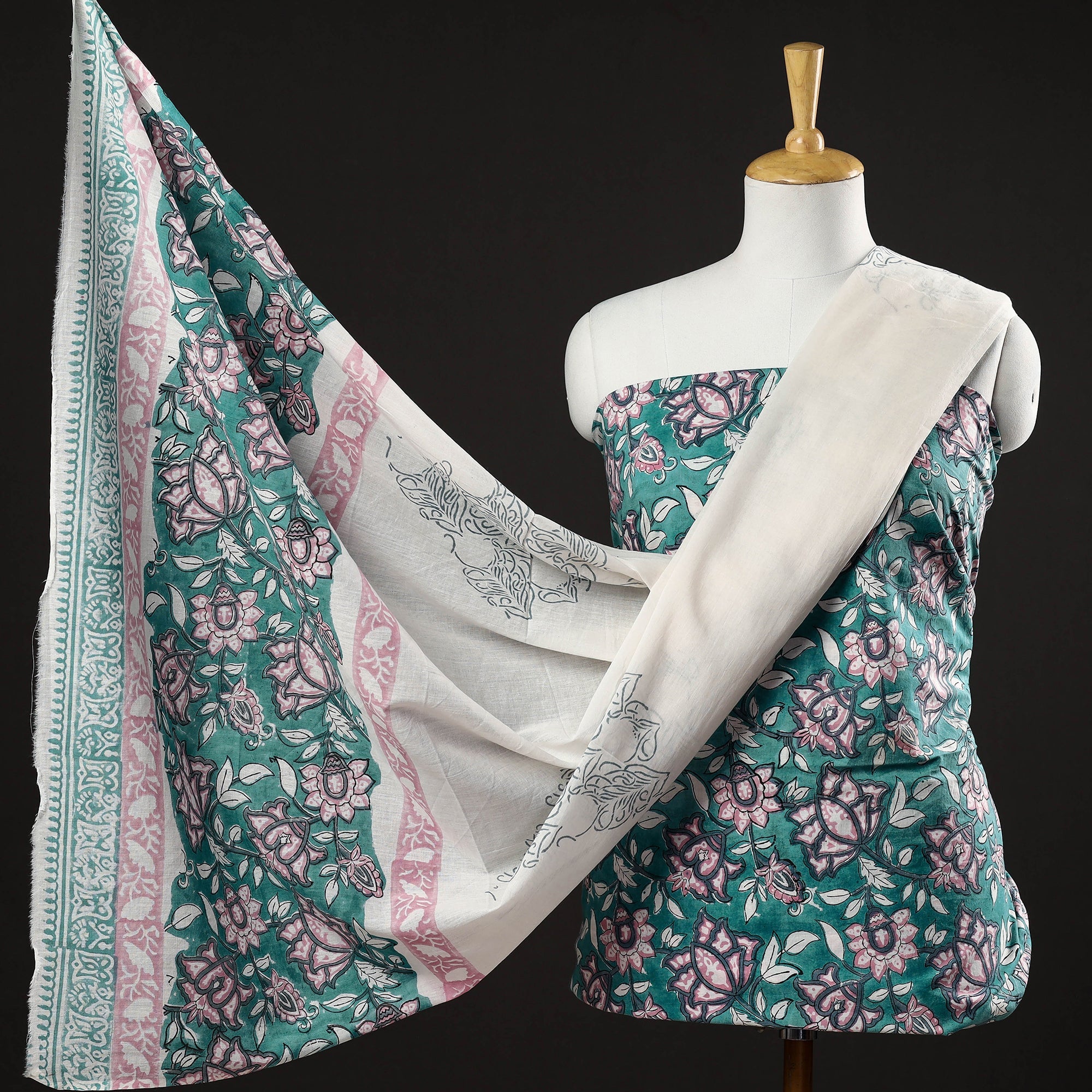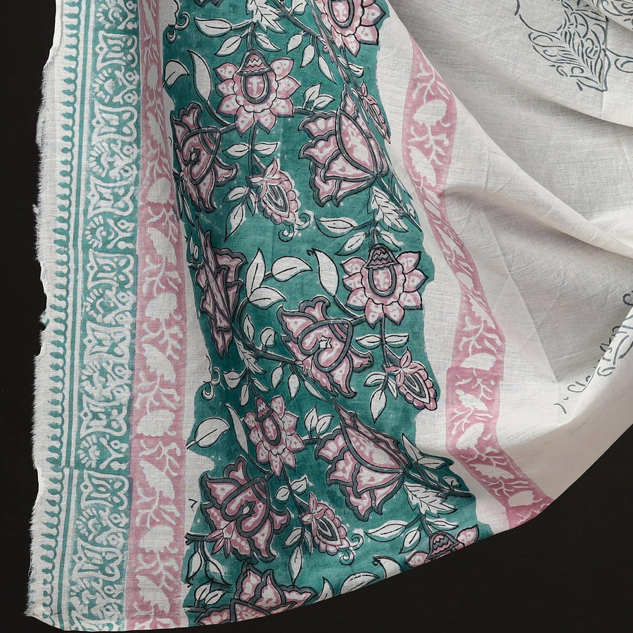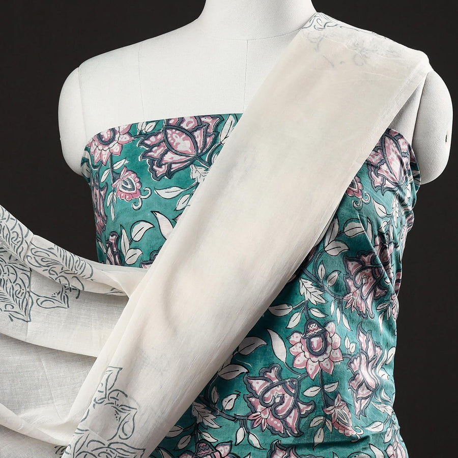 Fine quality sanganeri cotton suit material with mul cotton dupatta. Sanganeri is a hand block printing technique originating from Sanganer, a village in the southern part of Jaipur, Rajasthan. Bleed free VAT dyes used.