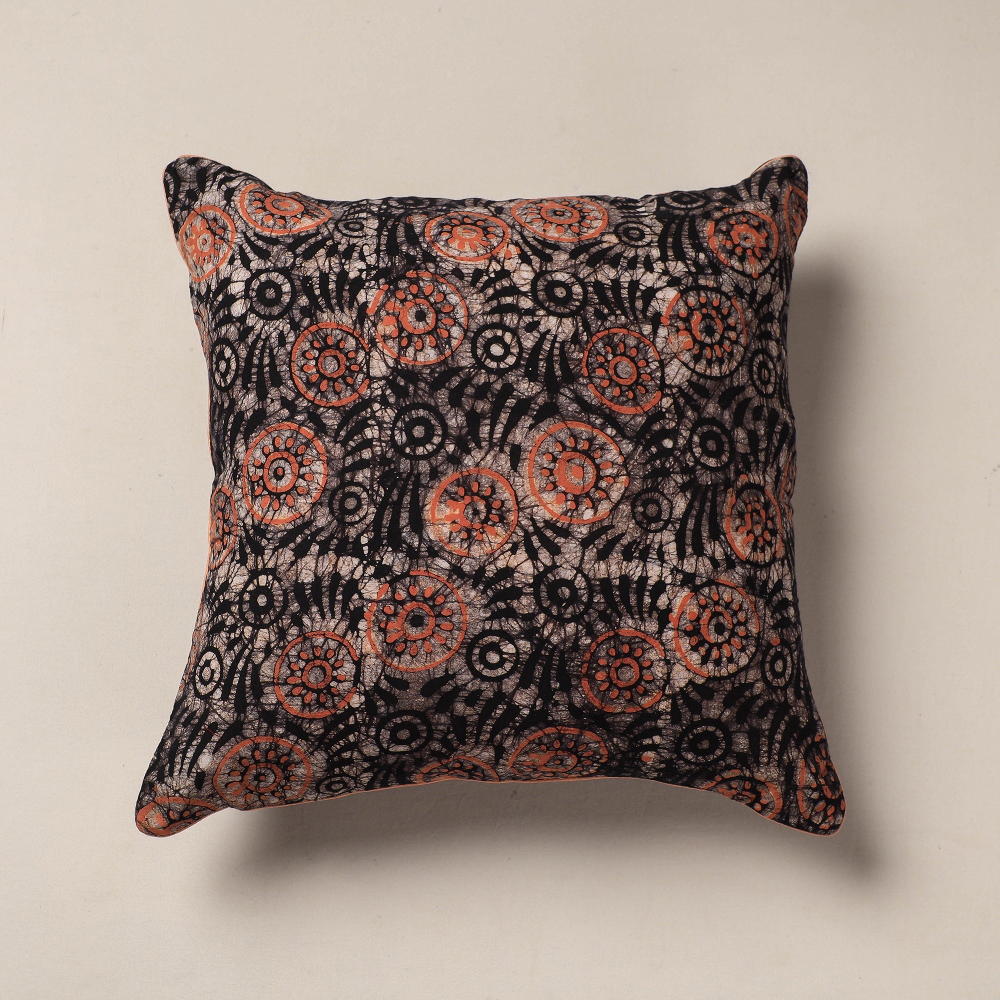 Fine quality hand batik printing cotton cushion cover. Batik is a technique of wax-resist dyeing applied to whole cloth, or cloth made using this technique. The traditional designs and motifs in Indian batik are often passed down from one generation to another.