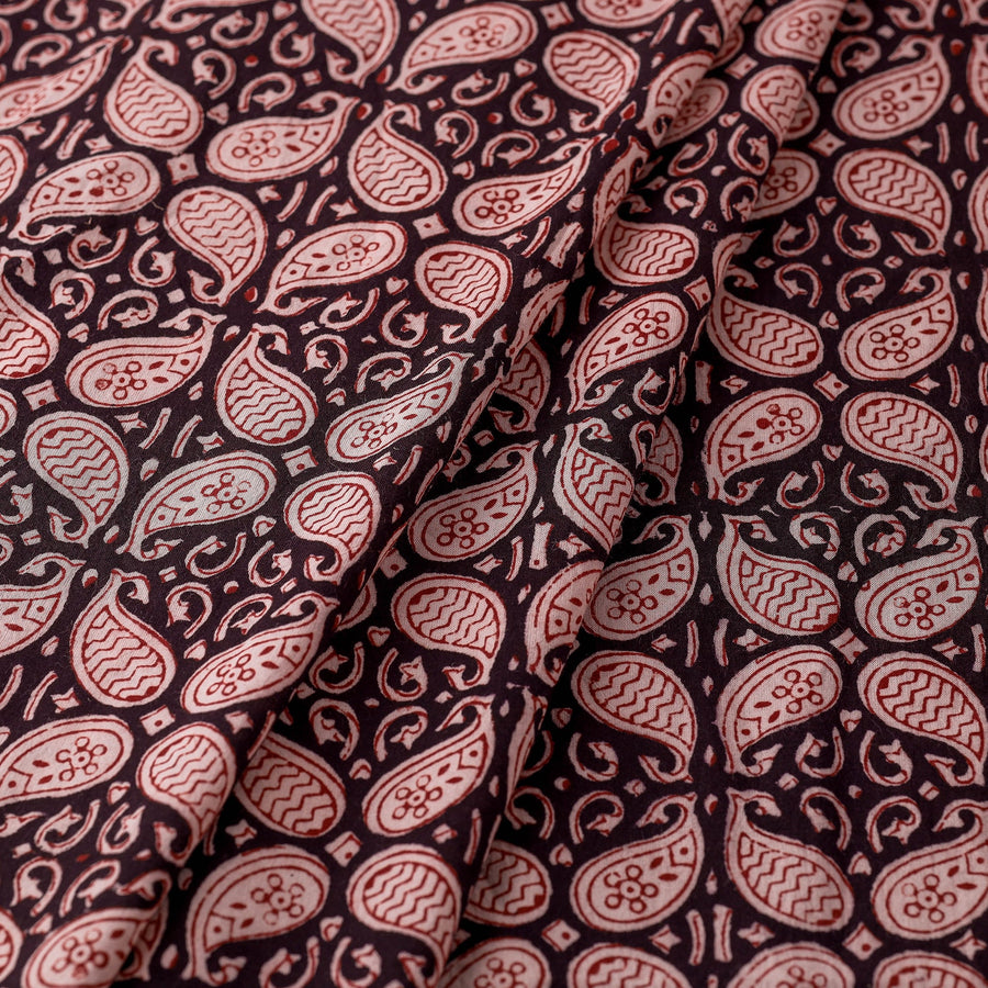 Fine quality black bagh block printed cotton fabric, made using natural dyes through traditional process of hand block printing by Umar Faruk Khatri practiced in Bagh, the Dhar district of Madhya Pradesh.