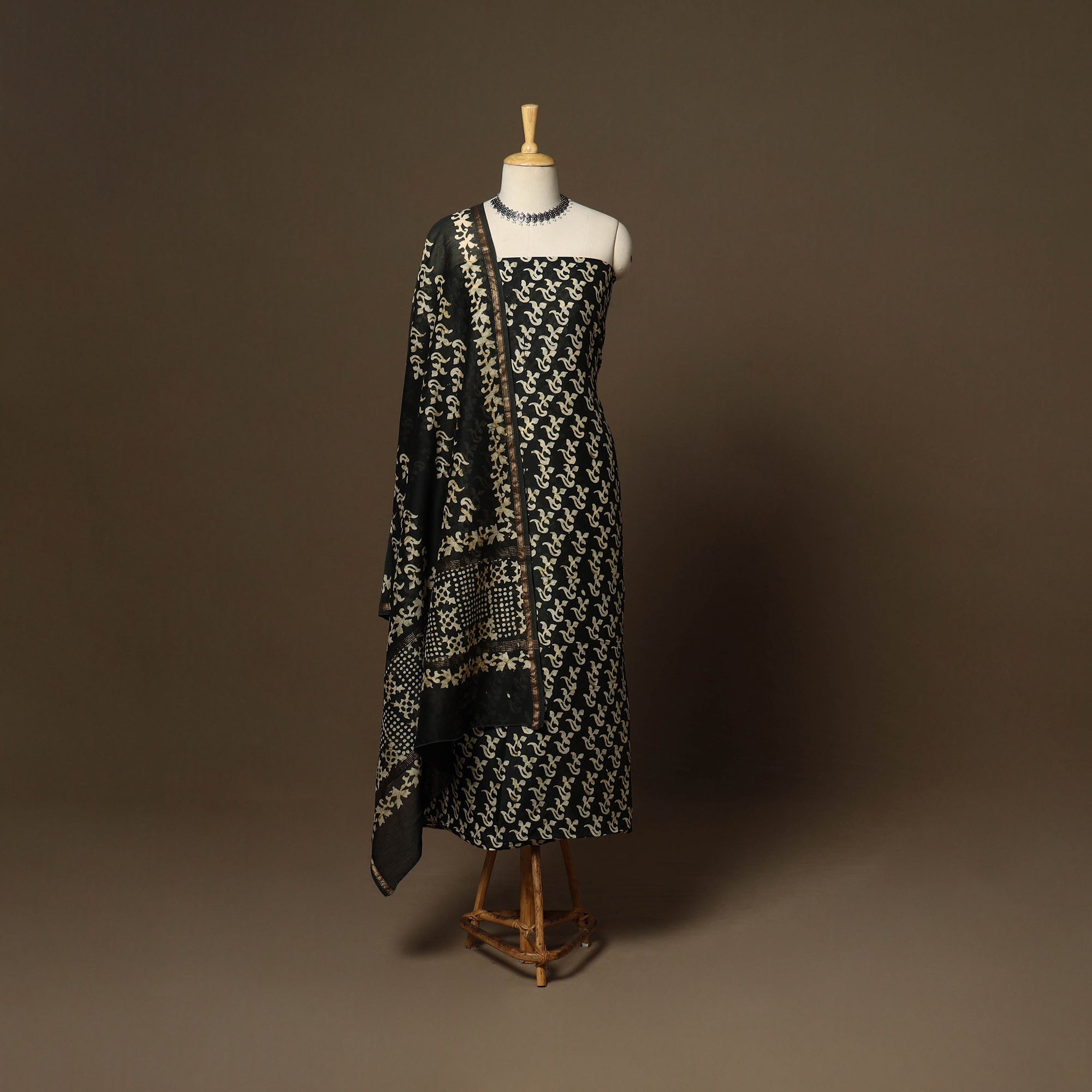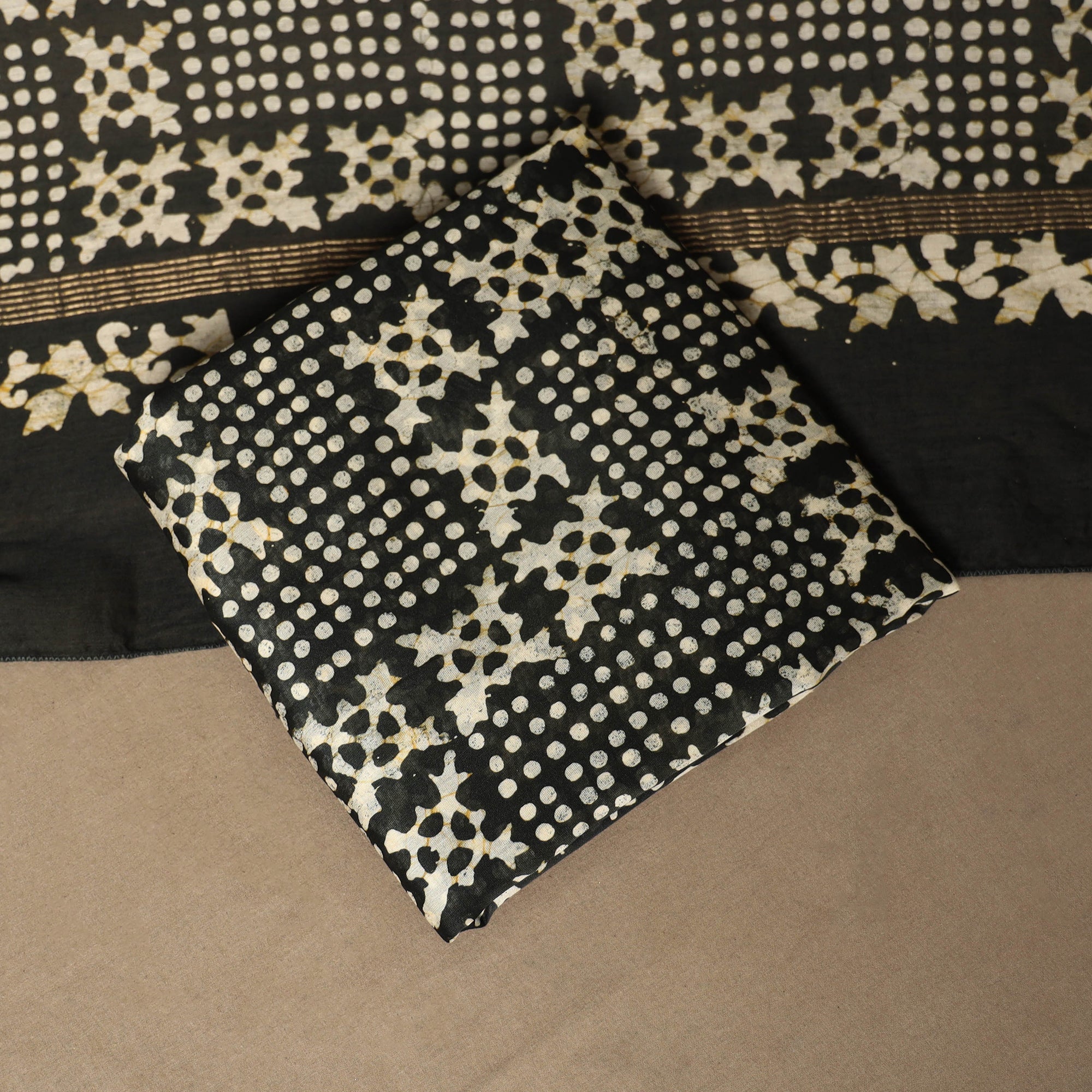 Batik is a very famous technique of wax-resist dyeing applied to whole cloth. The traditional designs and motifs in Indian batik are exceptional. It is a type of resist printing process wherein wax is applied to the fabric in specific areas.
