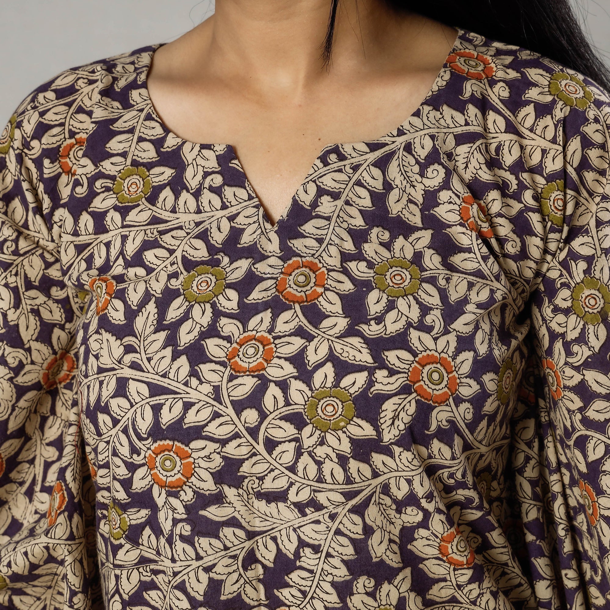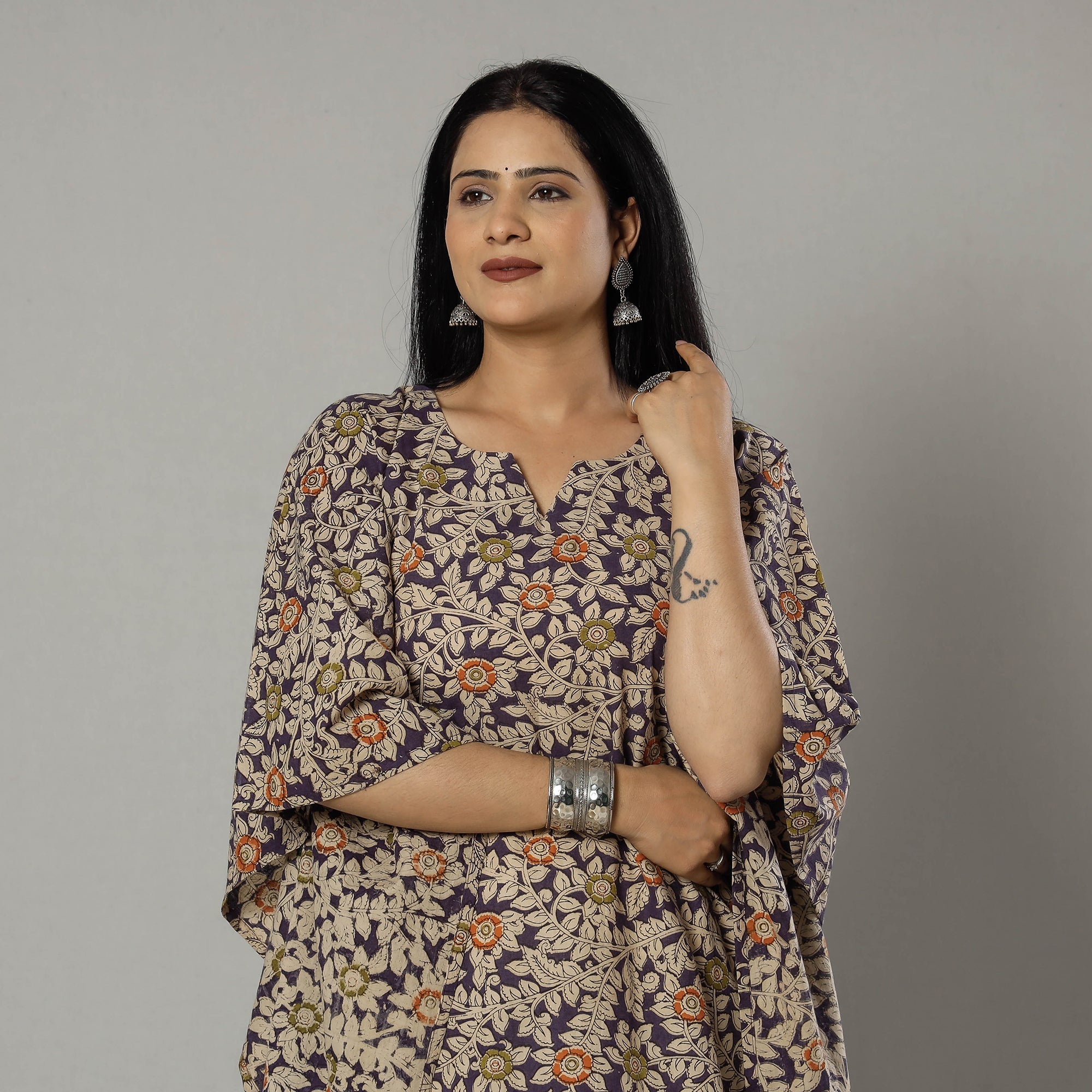 Look and feel beautiful in this uniquely designed cotton printed kaftan kalamkari kurta. Kalamkari is the earliest and most complex technique of printing. This kurta is perfect for your daily outing and for a special occasion.