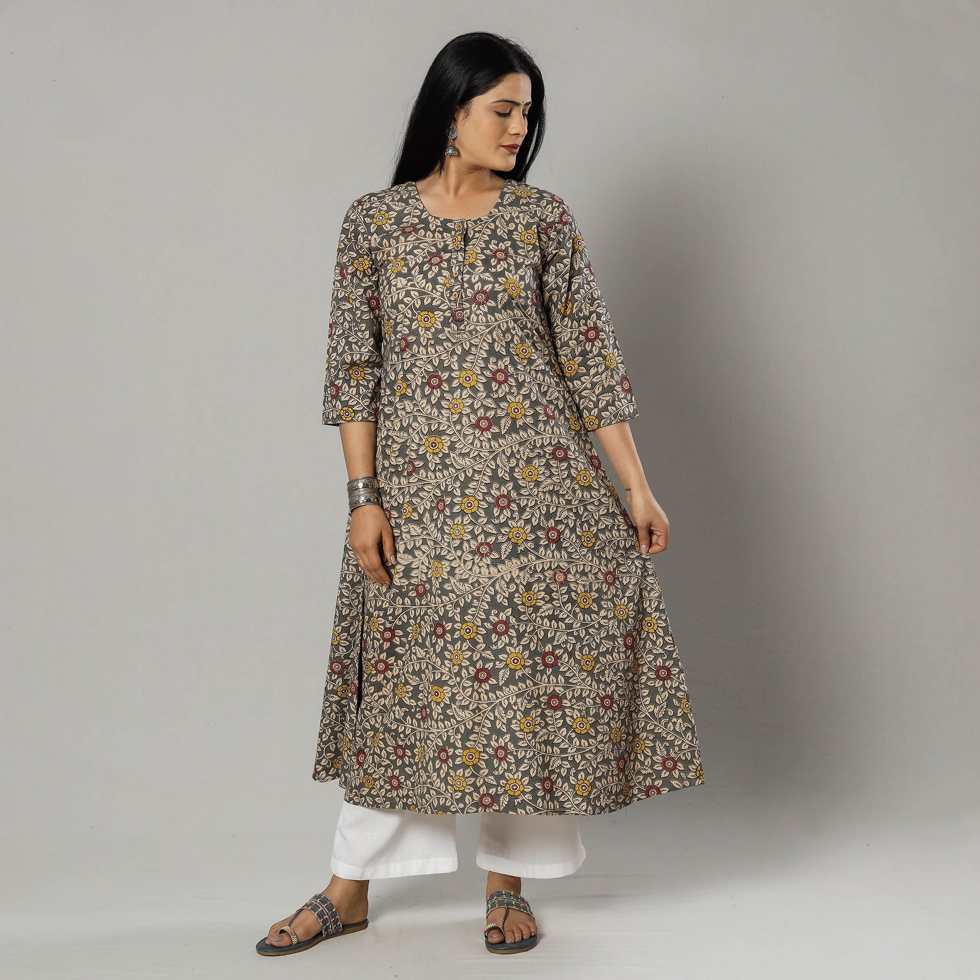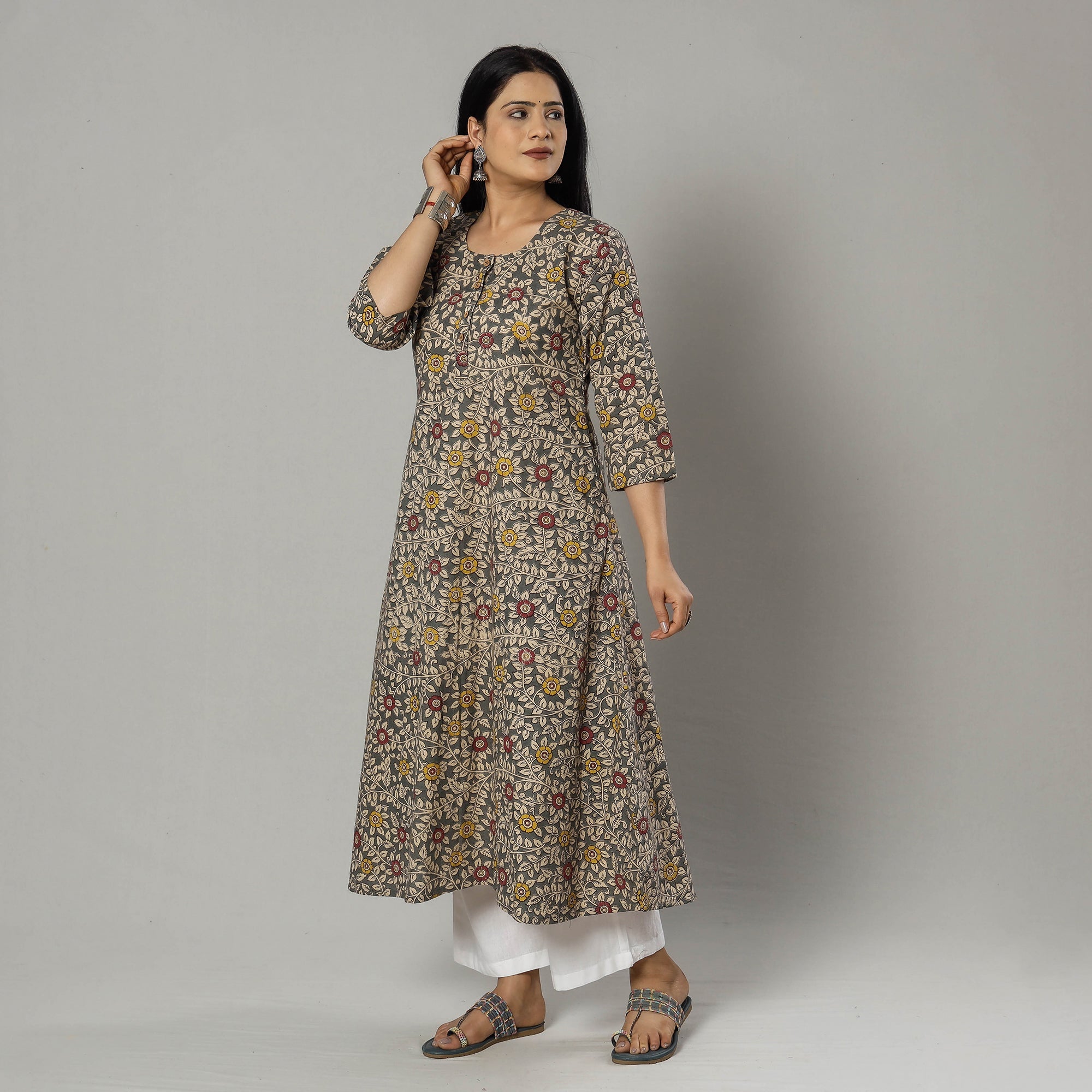 Look and feel beautiful in this uniquely designed cotton printed long kalamkari kurta with a side pocket. Kalamkari is the earliest and most complex technique of printing. This Kurta is perfect for your daily outing and for a special occasion.