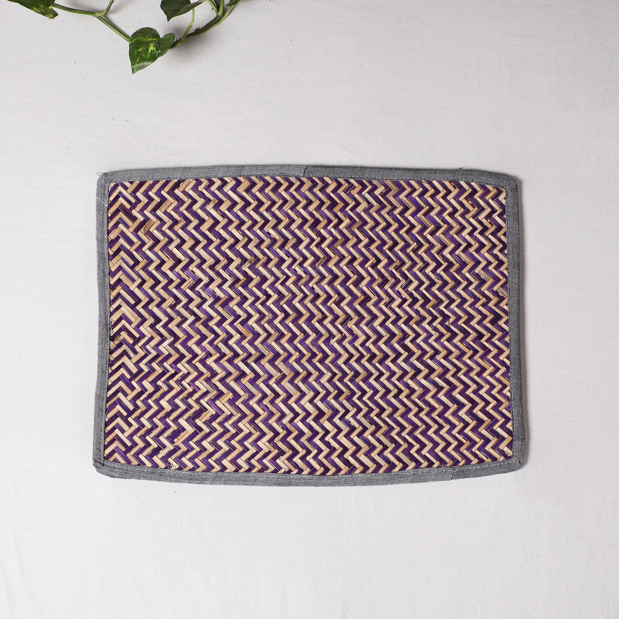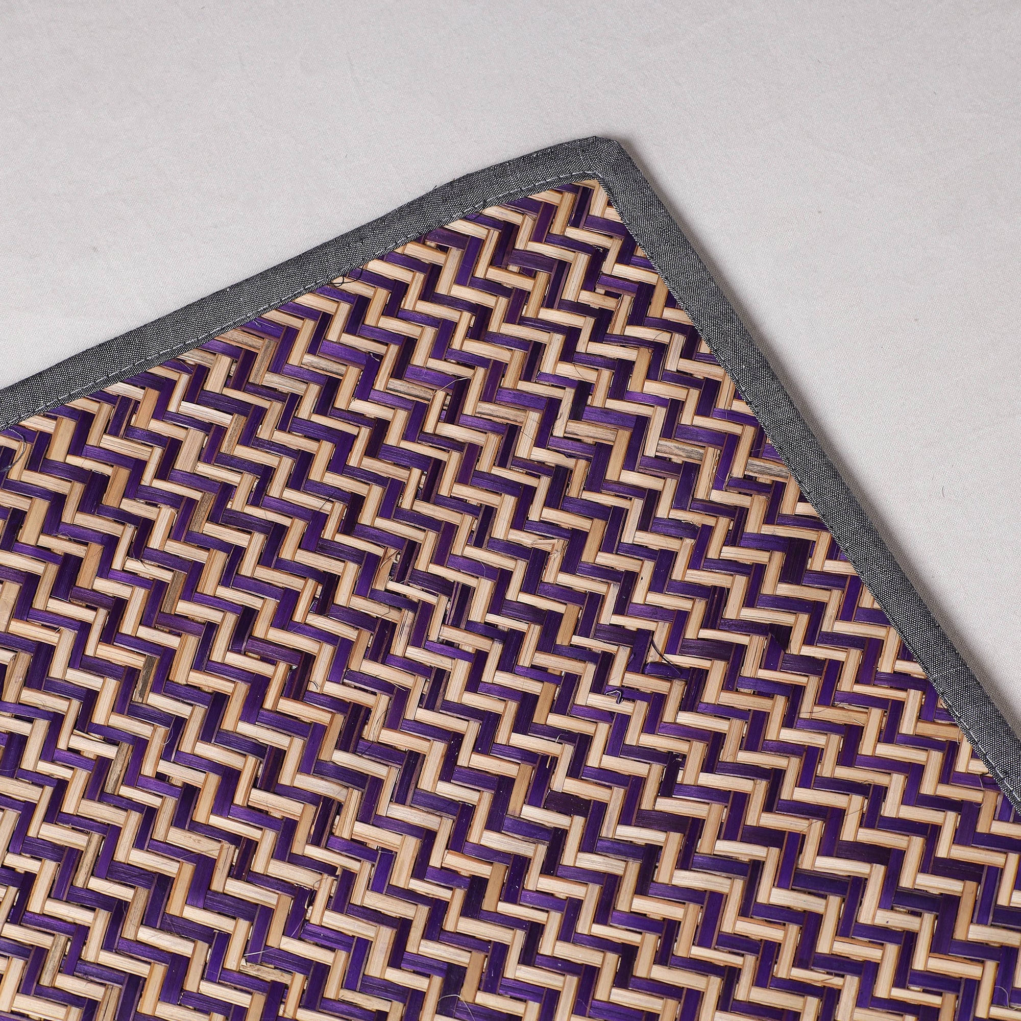 Purple handwoven water hyacinth reed table mat intricately detailed with unique patterns made from naturally dried water hyacinth reed fiber. Water Hyacinth's products are completely natural and eco-friendly.