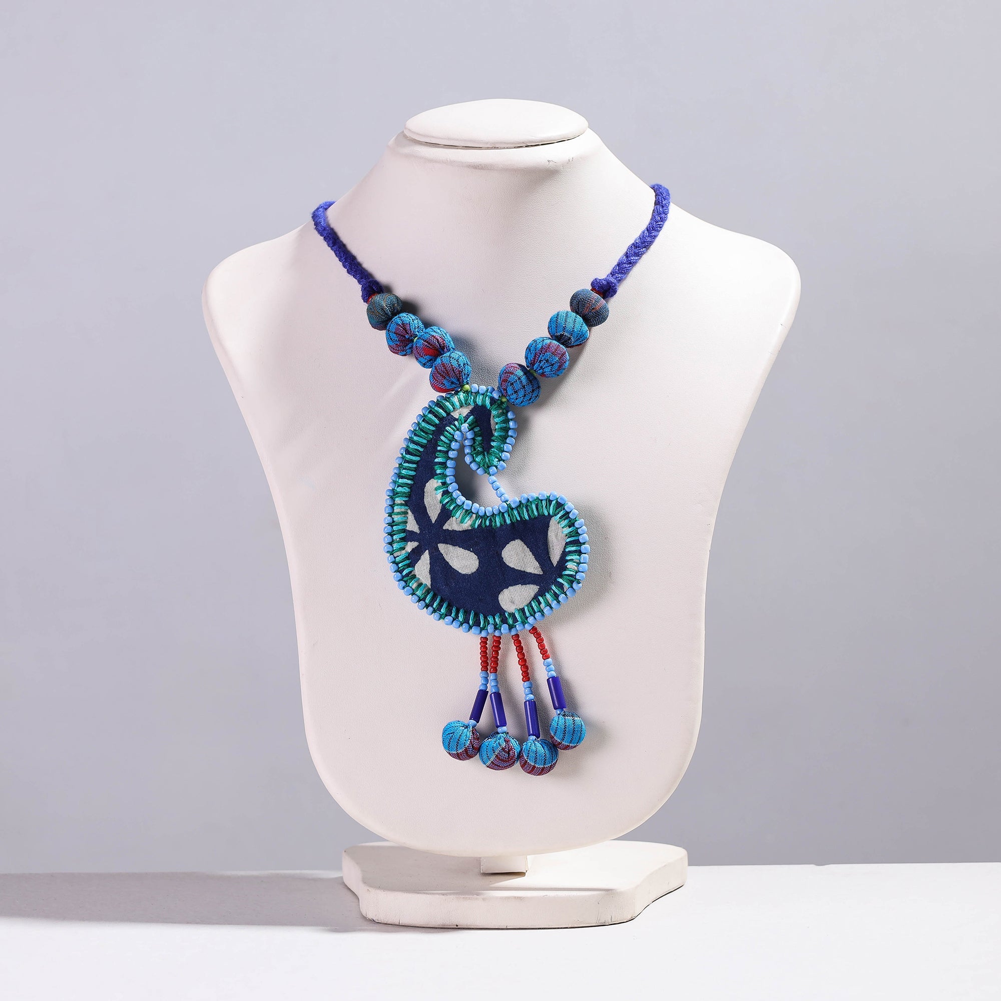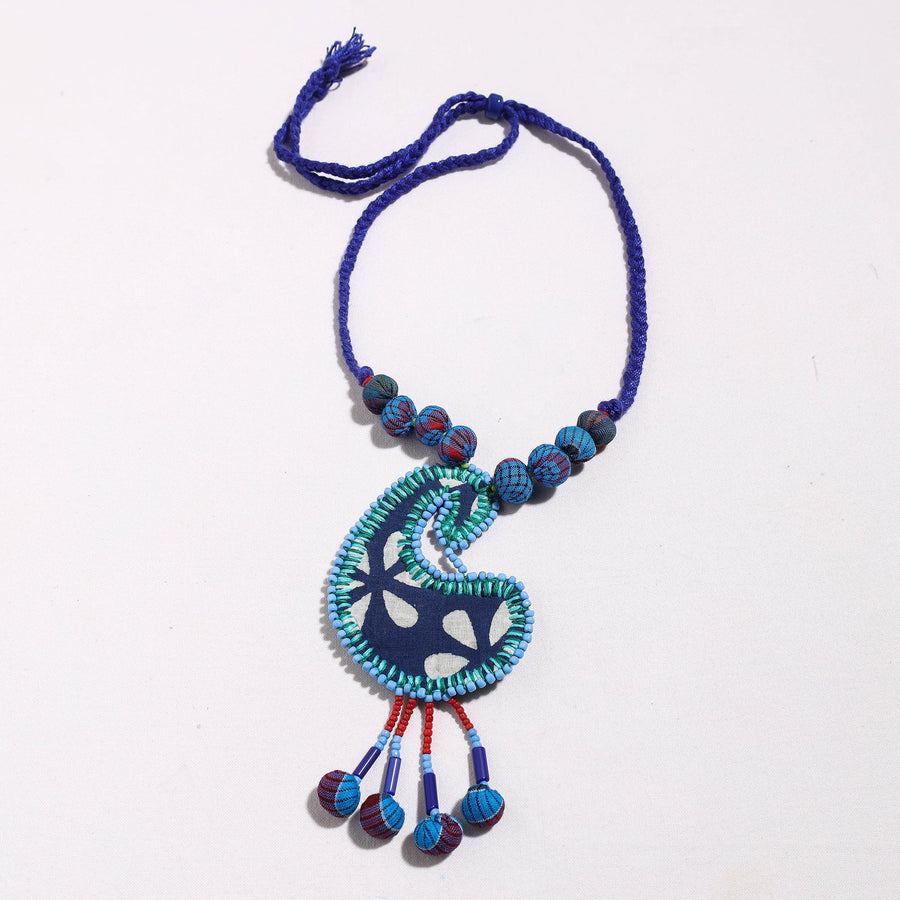 Blue handcrafted gamcha fabric beadwork necklace by Rangila Dhaga. This exclusive gamcha fabric jewelry by Rangila Dhaga will give you a stylish look and suits on your most of dresses. This jewelry is made from handloom gamcha fabrics.