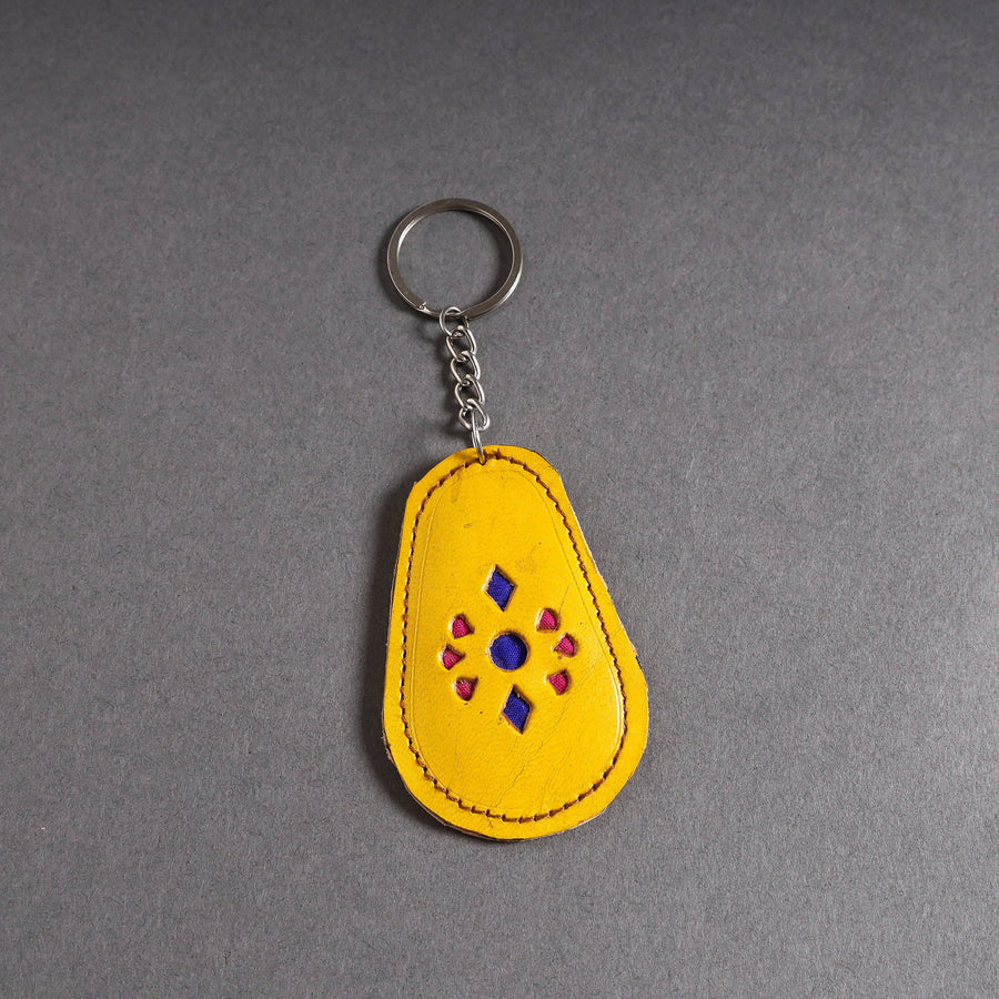 | Material | Handcrafted yellow keychain made from cruelty-free leather. This is a handicraft and textile art tradition of the tribal community of Kutch district in Gujarat. |