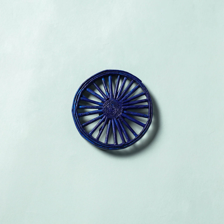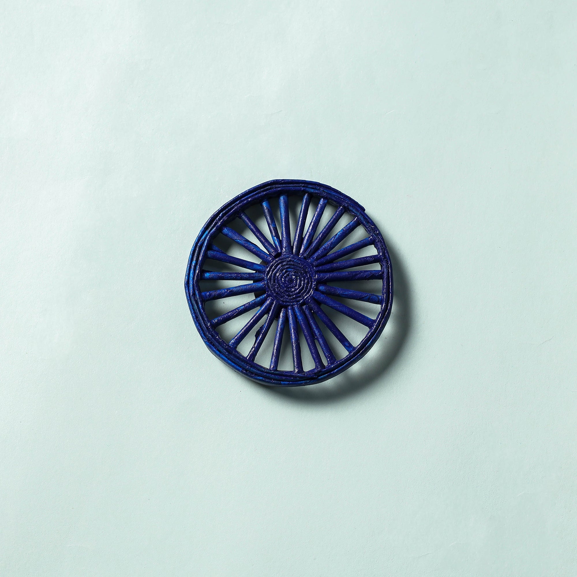 This is an upcycled, handcrafted magnet made from paper using the techniques of folding, coiling, and weaving. The color and the varnish make the magnet bright and long-lasting. The paper crafters create magic with their hands and transform the waste into a valuable and meaningful product.