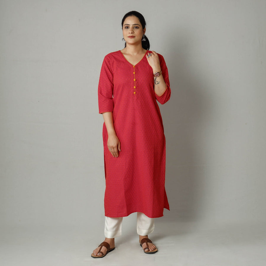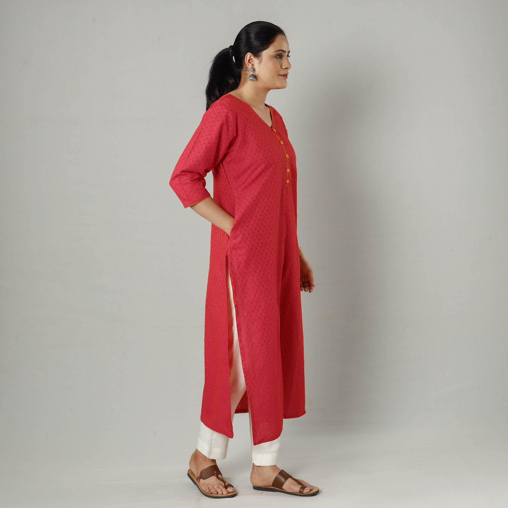 Look and feel beautiful in this uniquely designed jacquard cotton long Kurta with side pocket. This cotton Kurta makes you comfortable with ease all day long.