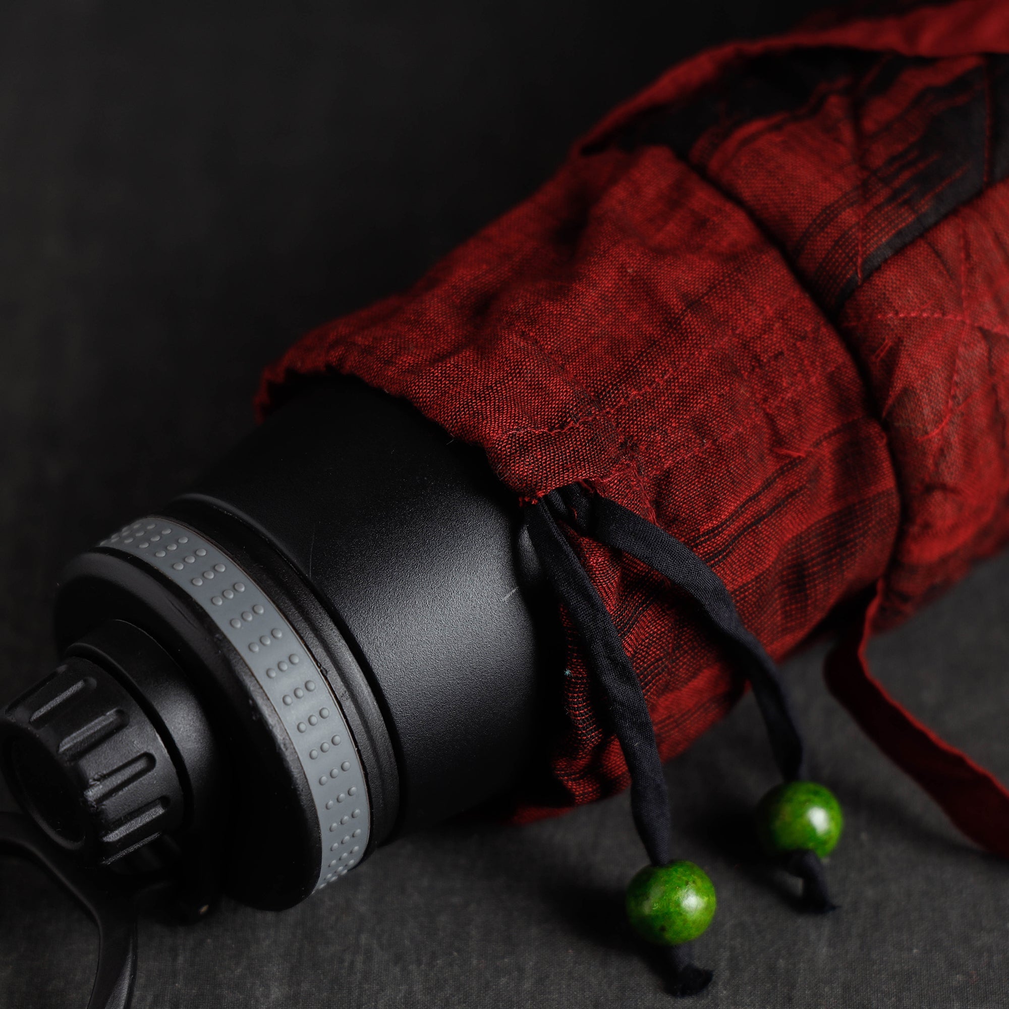 Handcrafted plain red cotton water bottle cover hand crafted by Indian Rural women. Reusable, Eco-friendly, and machine-washable, this water bottle cover can be simply washed and reused. Cotton fabric lining inside.