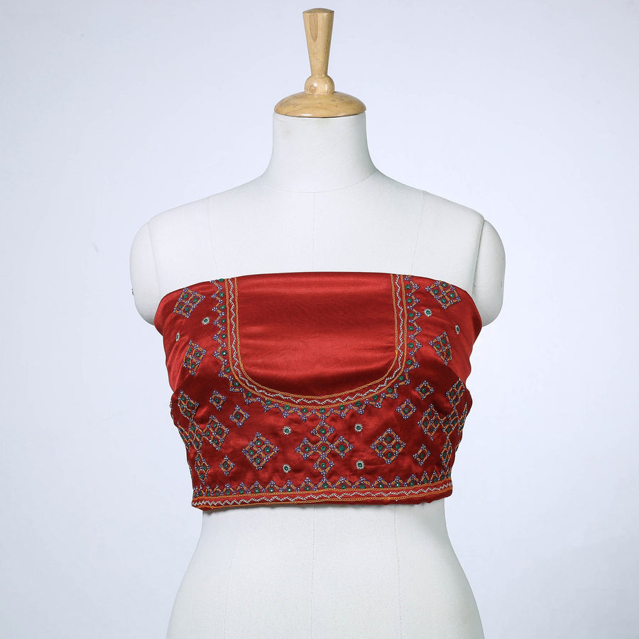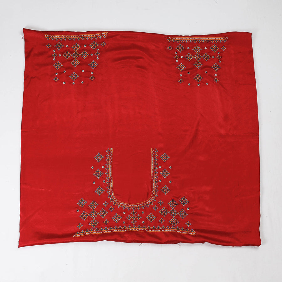 Fine quality kutch mirror work mashru silk blouse piece. The kutch embroidery is a handicraft and textile signature art tradition of the tribal community of kutch district in Gujarat. This embroidery with its rich designs has made a notable contribution to the Indian embroidery traditions. The embroidery, practiced normally by women is generally done on fabrics of cotton & Silk, in the form of a net using cotton or silk thread.
