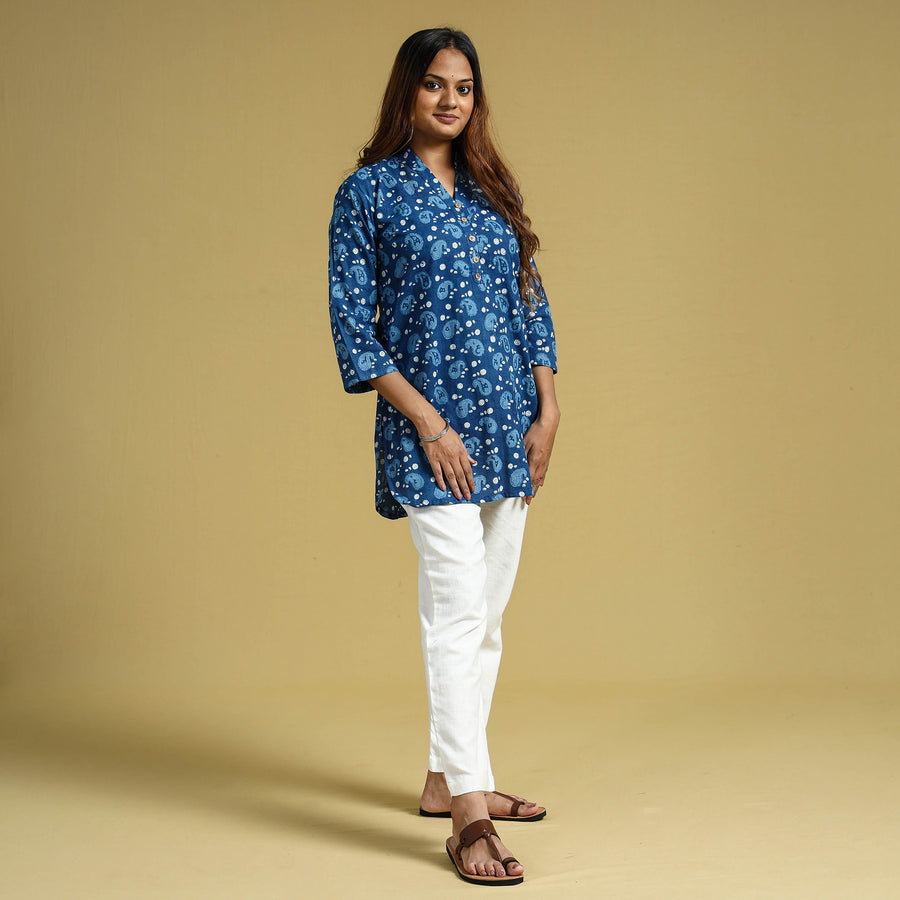 Look and feel beautiful in this uniquely designed indigo dabu block printed cotton short kurta with side pocket. This cotton kurta makes you comfortable with ease all day long. This kurta is perfect for your daily outing and for a special occasion. “Neelसी” is an in-house curated sustainable indigo clothing brand. Neelसी finds its inspiration from the 2000-year-old tradition of the natural dying of textiles in India. Neelसी natural cotton fabric clothing is perfect for summers, which are as light as air, dyed with natural colours of love and emotions, reimagining and redefining the timeless era.