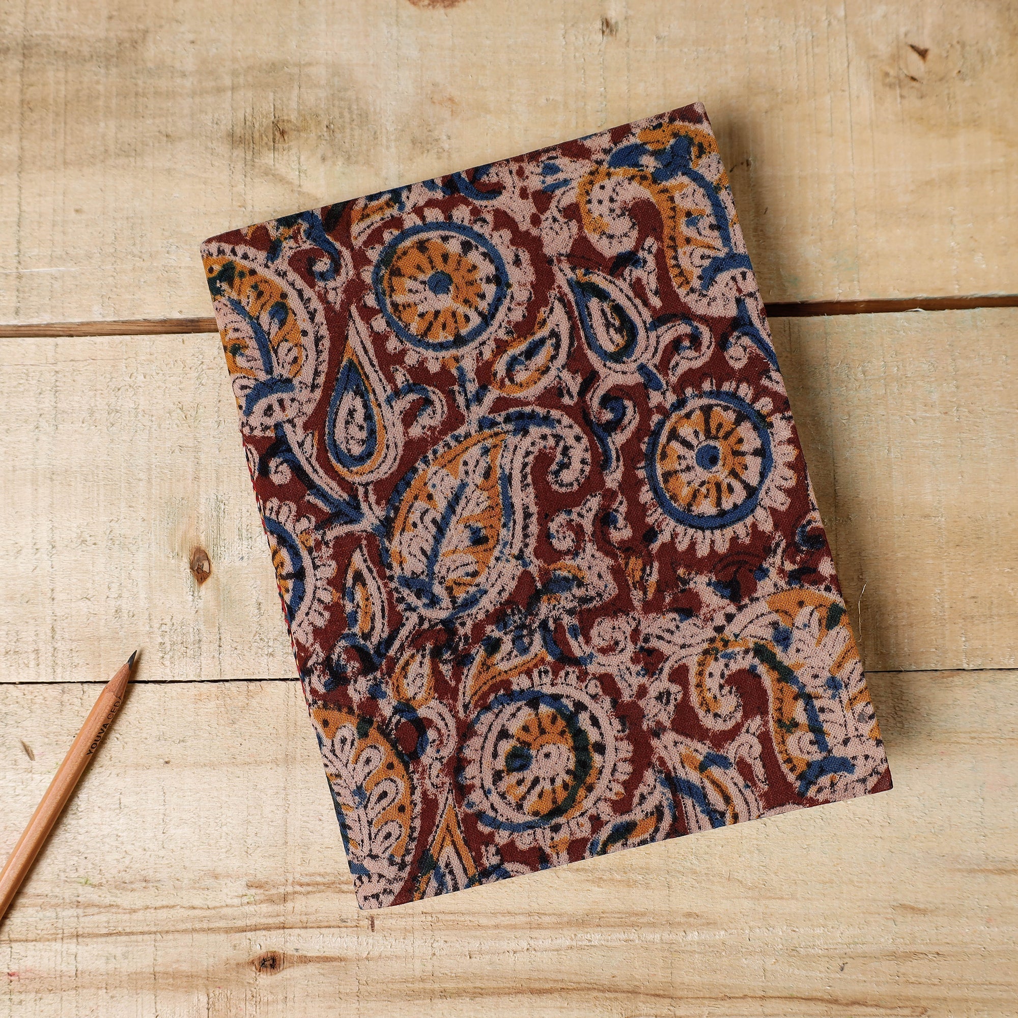| Material | Red kalamkari block printed cotton fabric embellished hard bound cover notebook with handmade papers. This paper is made of cotton, paper and other natural fibre waste recycled in an eco-friendly manner without the use of chemicals. Handmade by master artisans who maintain careful personal attention to detail. They are highly skilled in a variety of bookbinding and handmade stationery manufacturing techniques. |