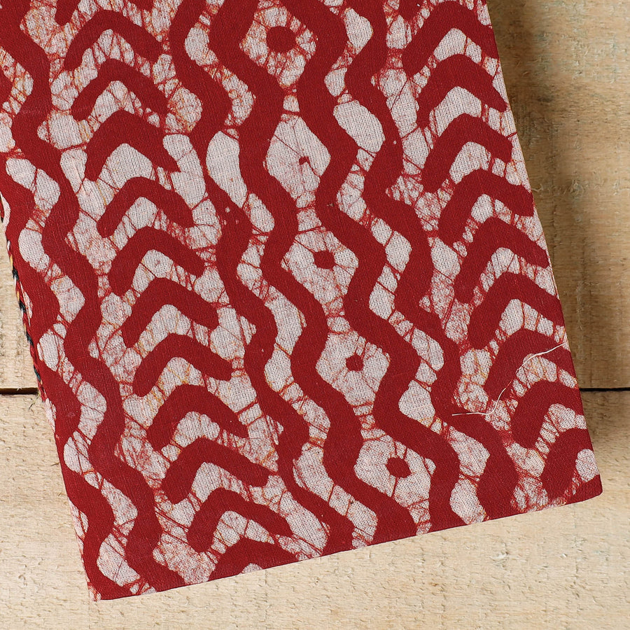 | Material | Hand batik printed cotton red fabric embellished hard bound cover notebook with handmade papers. This paper is made of cotton, paper and other natural fibre waste recycled in an eco-friendly manner without the use of chemicals. Handmade by master artisans who maintain careful personal attention to detail. They are highly skilled in a variety of bookbinding and handmade stationery manufacturing techniques. |