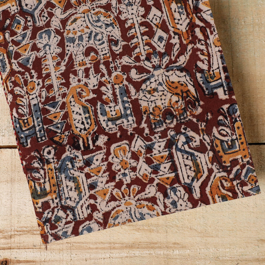 | Material | Red kalamkari block printed cotton fabric embellished hard bound cover notebook with handmade papers. This paper is made of cotton, paper and other natural fibre waste recycled in an eco-friendly manner without the use of chemicals. Handmade by master artisans who maintain careful personal attention to detail. They are highly skilled in a variety of bookbinding and handmade stationery manufacturing techniques. |