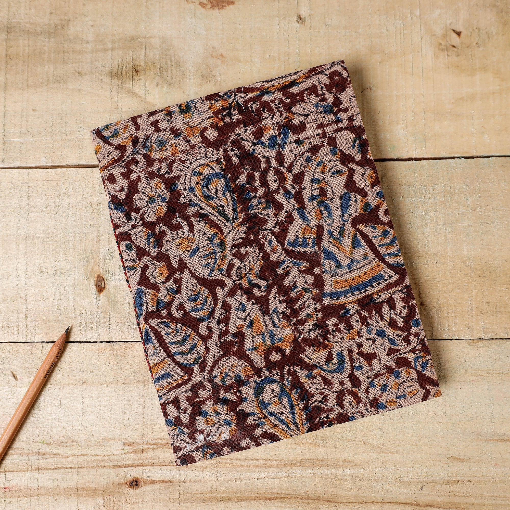 | Material | Maroon kalamkari block printed cotton fabric embellished hard bound cover notebook with handmade papers. This paper is made of cotton, paper and other natural fibre waste recycled in an eco-friendly manner without the use of chemicals. Handmade by master artisans who maintain careful personal attention to detail. They are highly skilled in a variety of bookbinding and handmade stationery manufacturing techniques. |