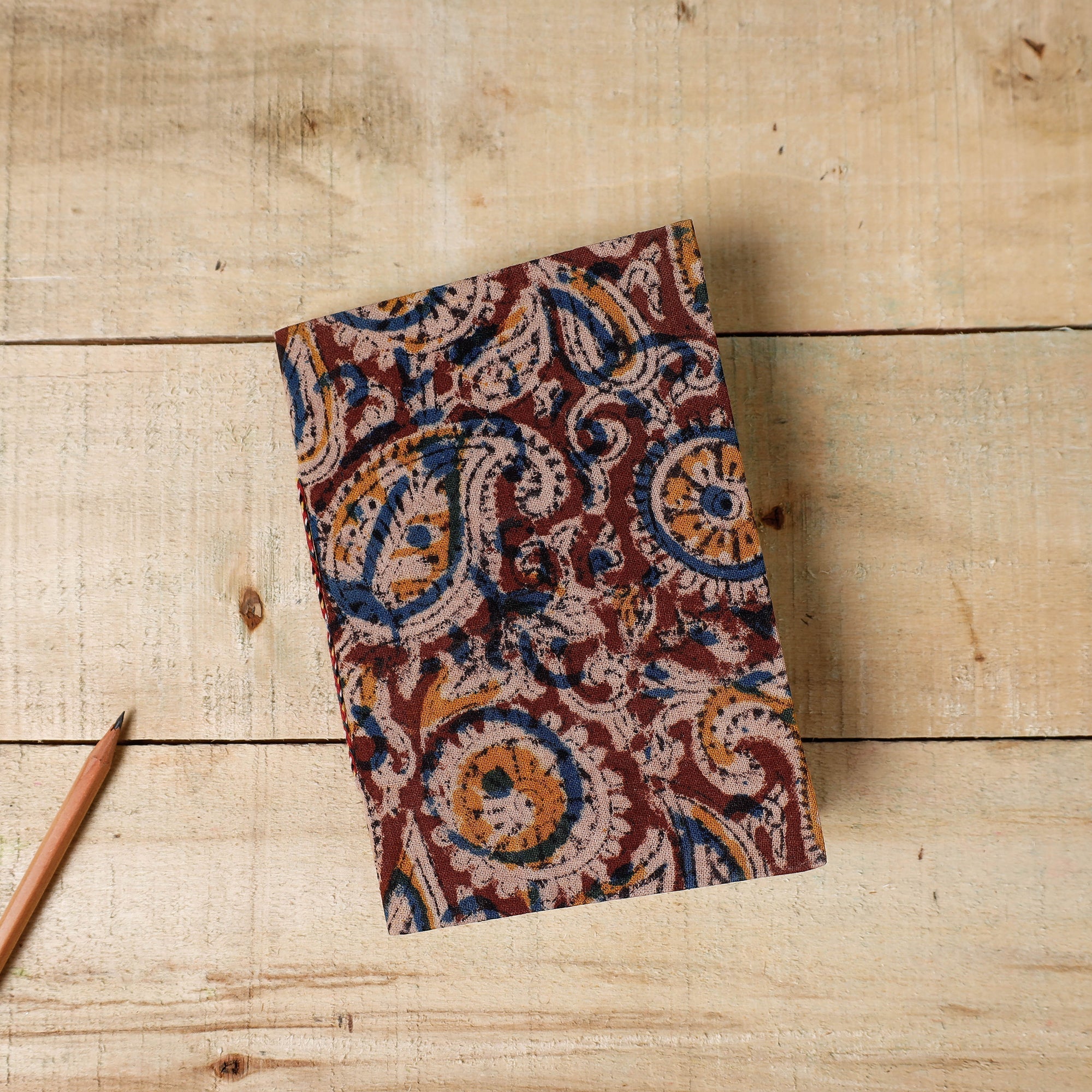 | Material | Red kalamkari block printed cotton fabric embellished hard bound cover notebook with handmade papers. This paper is made of cotton, paper and other natural fibre waste recycled in an eco-friendly manner without the use of chemicals. Handmade by master artisans who maintain careful personal attention to detail. They are highly skilled in a variety of bookbinding and handmade stationery manufacturing techniques. |