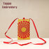 Kutch tappo embroidery done on this beautiful yellow mobile sling bag. Made up of mashru silk fabric with hand embroidered done by craftswoman in Kutch region of Gujarat. It has one zipper pocket outside.
