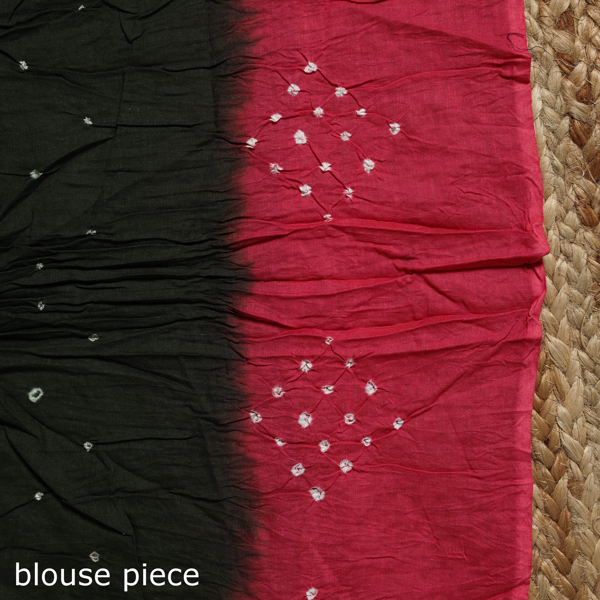 Fine quality green kutch bandhani cotton saree featuring majestic bandhani pattern, tie-dyed using the traditional technique practised by the artisans of Kutch. The art of Bandhani (Bandhej) is highly skilled process. The technique involves dyeing a fabric which is tied tightly with a thread at several points.