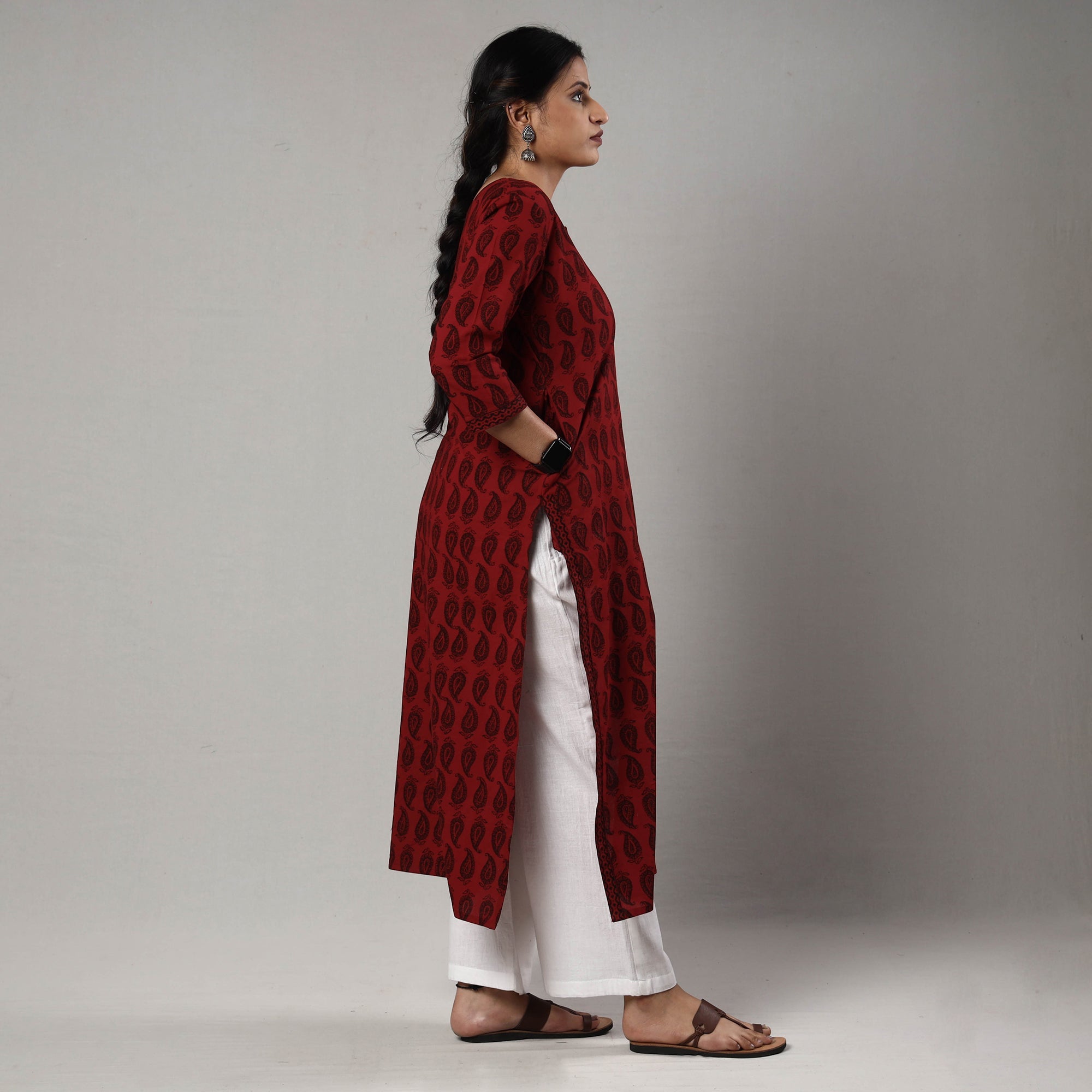 Look and feel beautiful in this uniquely designed block print cotton straight bagh kurta with one side pocket. This cotton kurta makes you comfortable with ease all day long. This kurta is perfect for your daily outing and for a special occasion. Bagh is a hand block printing technique from the Bagh, a small tribal town in Dhar district of Madhya Pradesh. ‘Bagh prints’ are trendy, cool and comfortable cloth material.