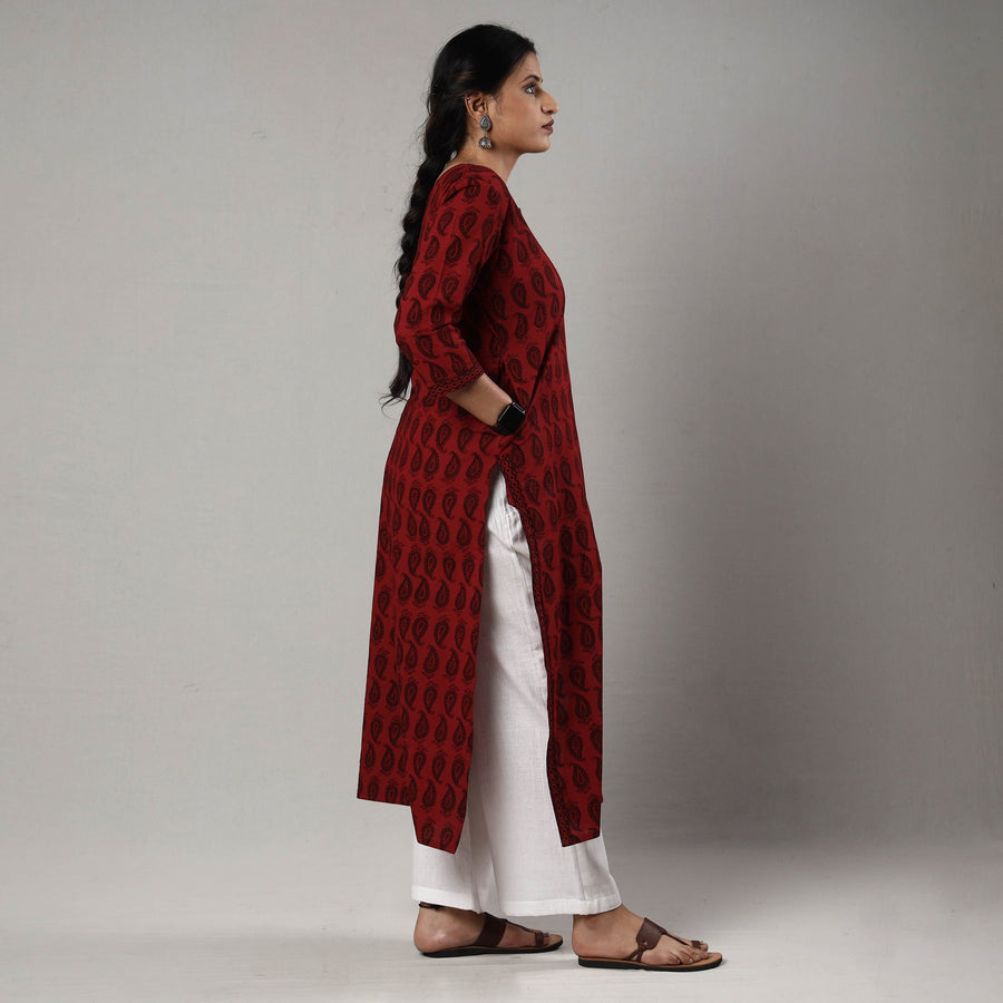 Red - Girls Bagh Block Print Pure Cotton Kurta Set (2-6 Years) 18