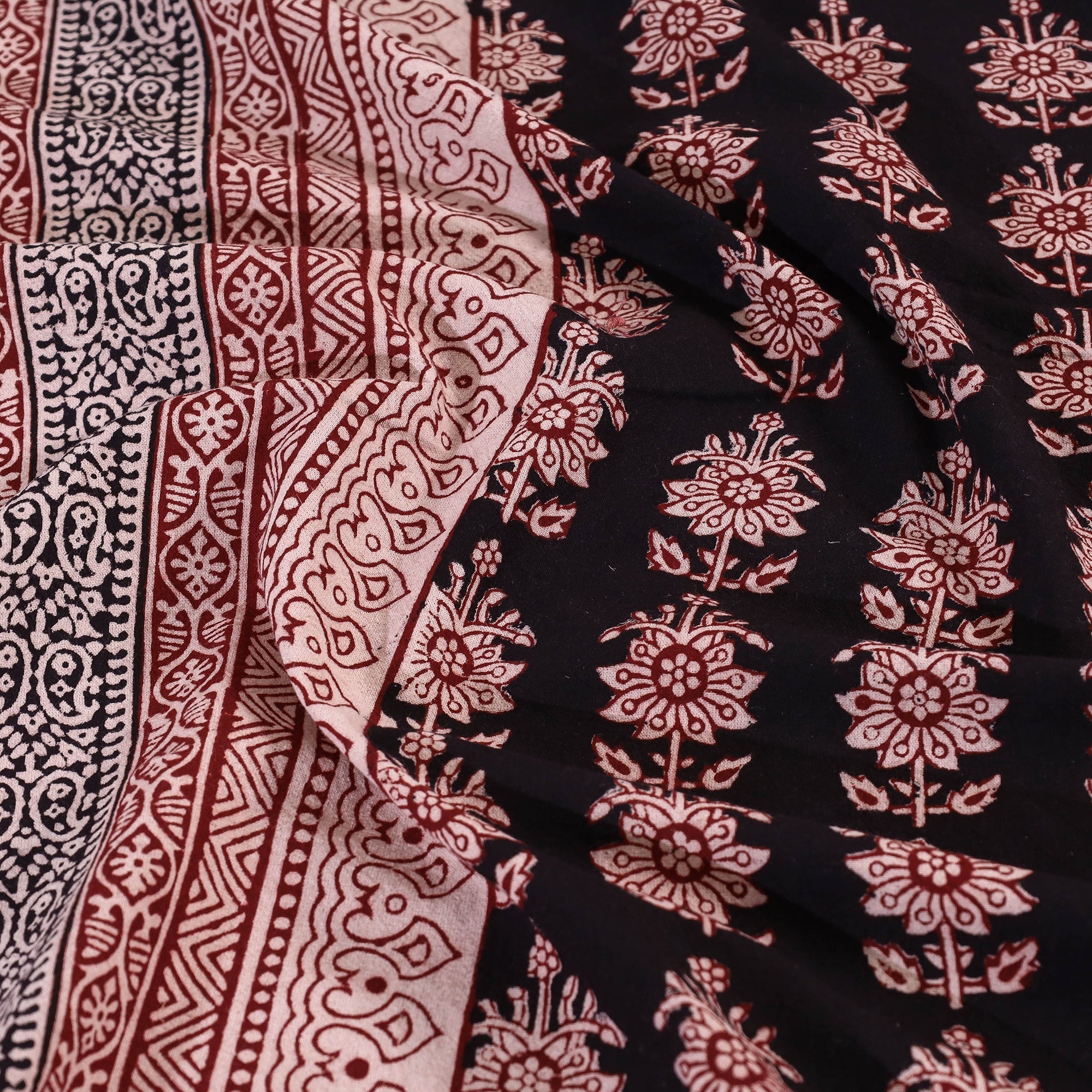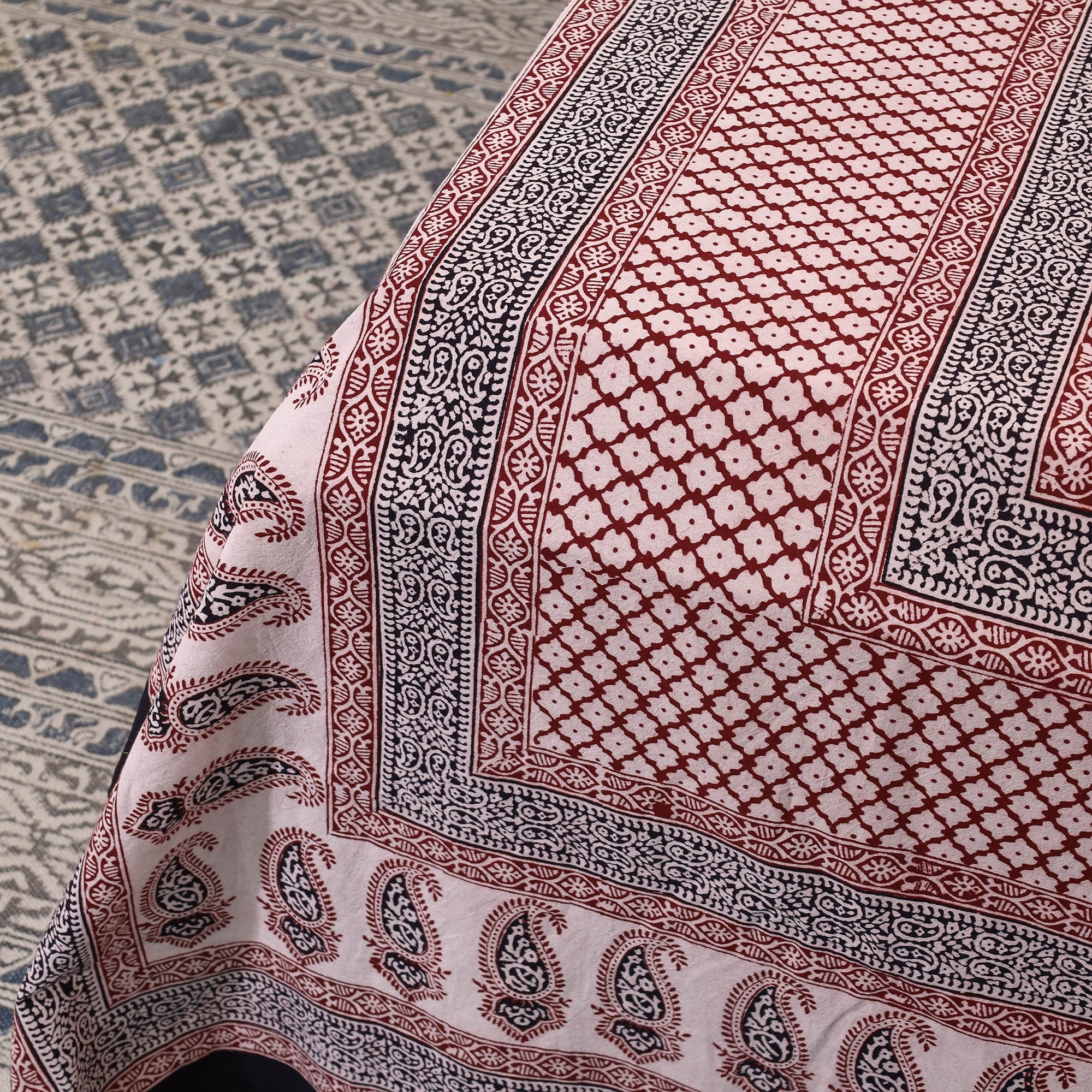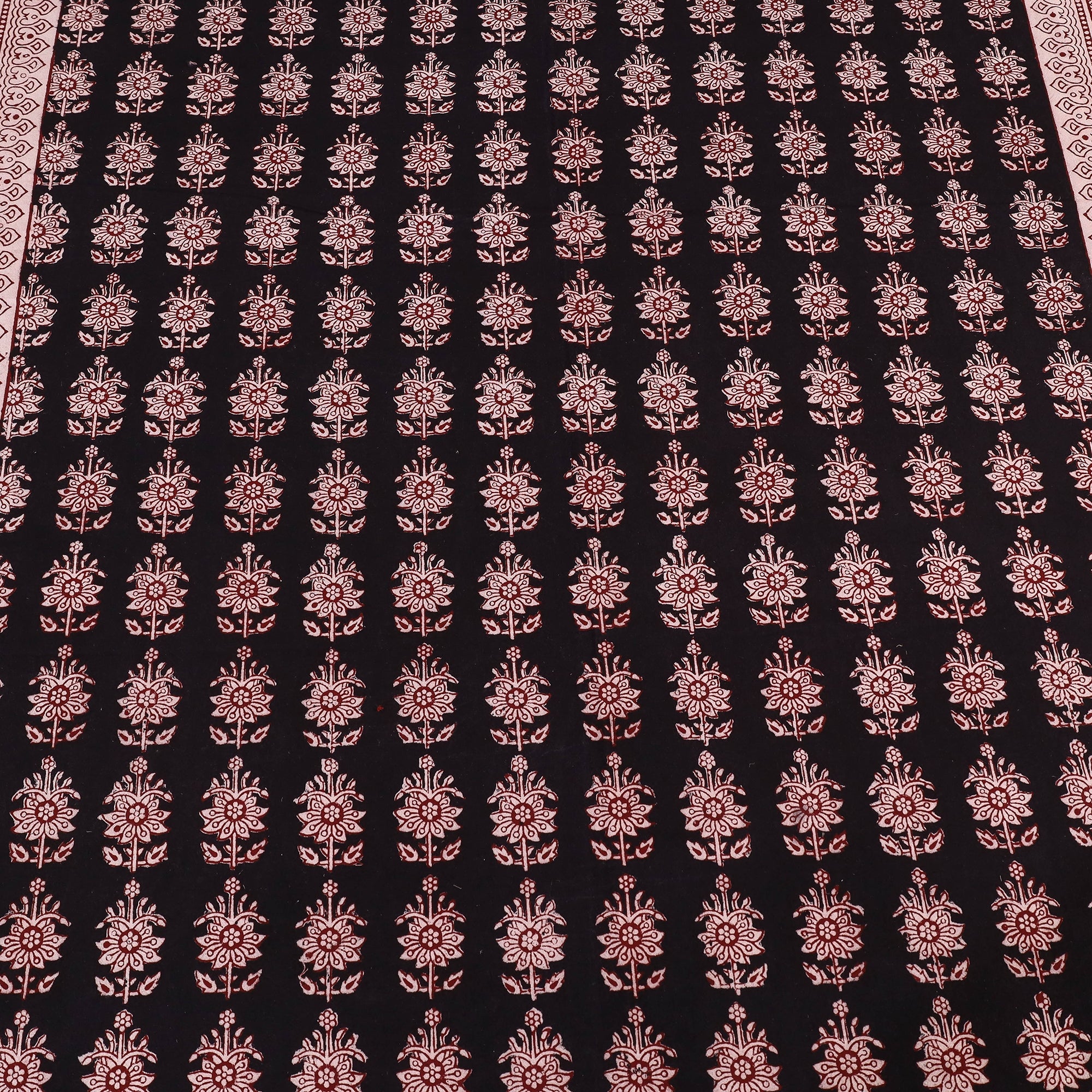 Fine quality black bagh block printed cotton Double Bed cover, made using natural dyes through traditional processes by master artisan practiced in Bagh, the Dhar district of Madhya Pradesh.