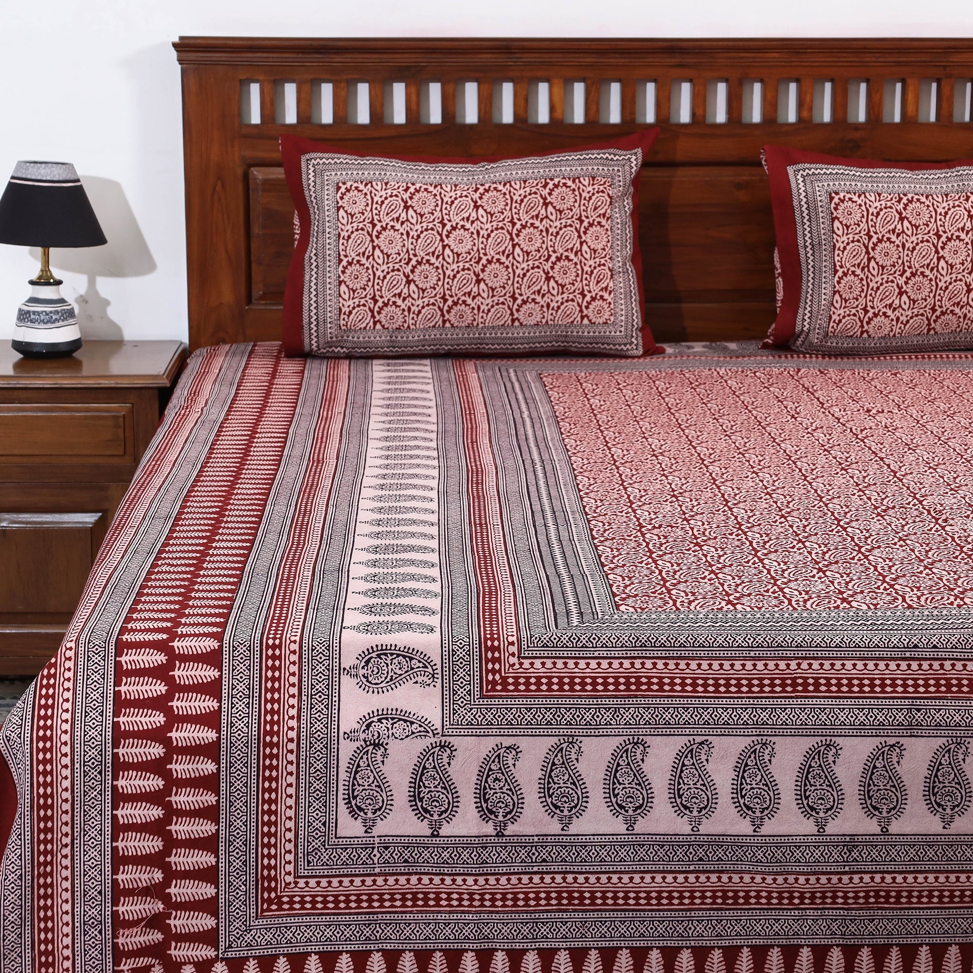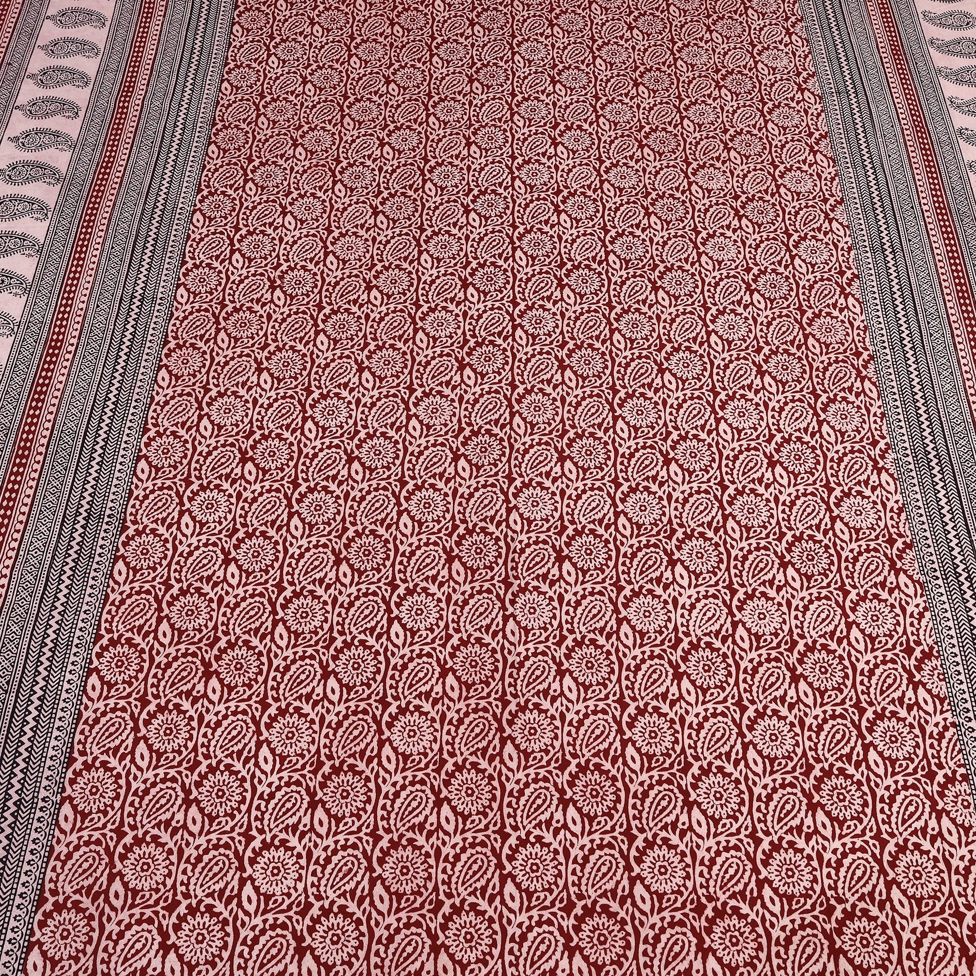 Fine quality red bagh block printed cotton Double Bed cover, made using natural dyes through traditional processes by master artisan practiced in Bagh, the Dhar district of Madhya Pradesh.
