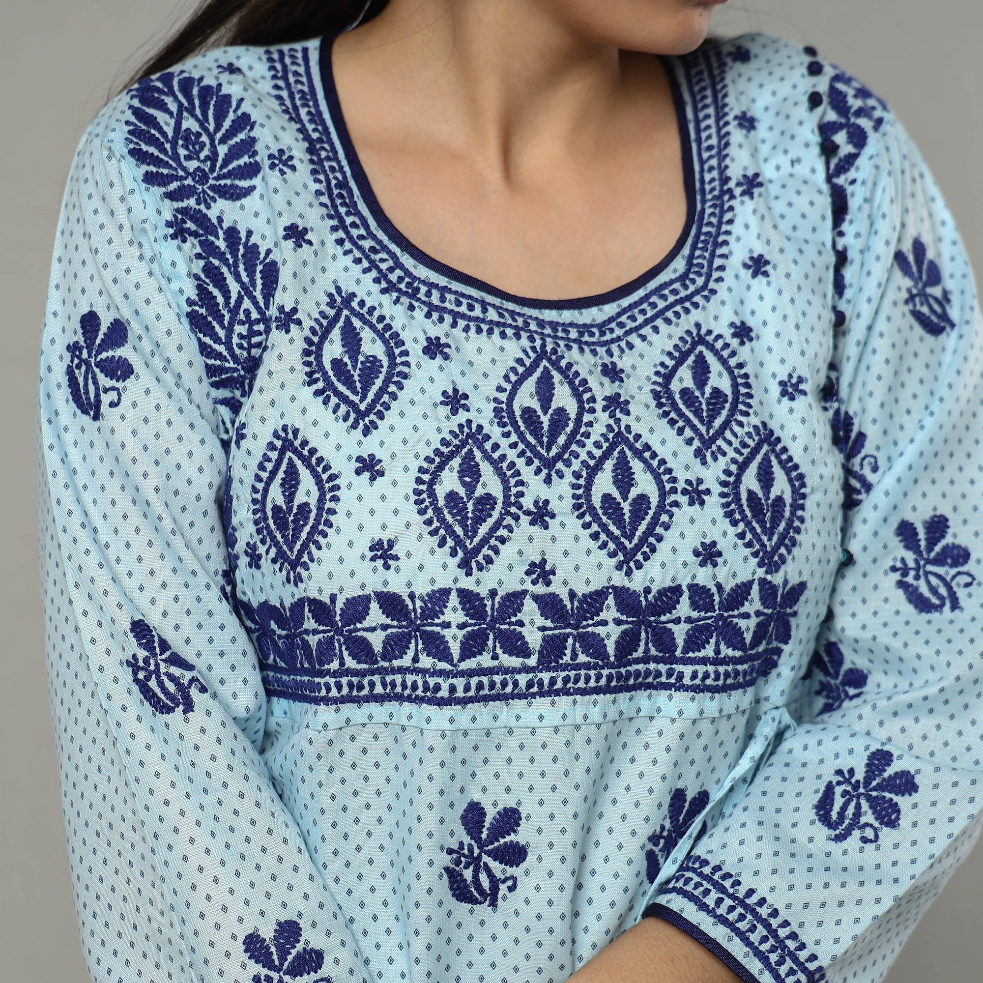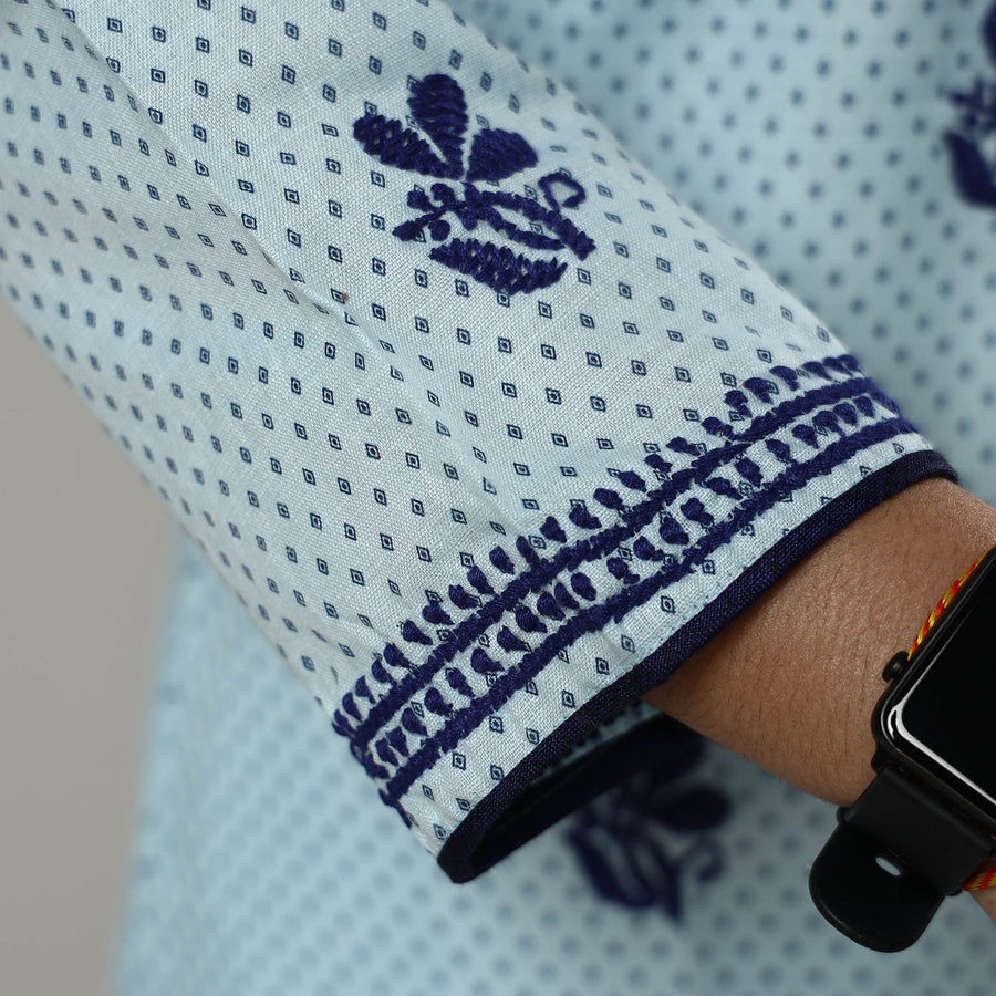 Intricate and artfully done lucknowi chikankari hand embroidery cotton kurta. Chikankari is a traditional textile decoration from Lucknow. It is very delicate and intricate hand embroidery work where thread is embroidered on cool, pastel shades of light cotton garments.