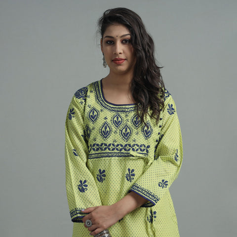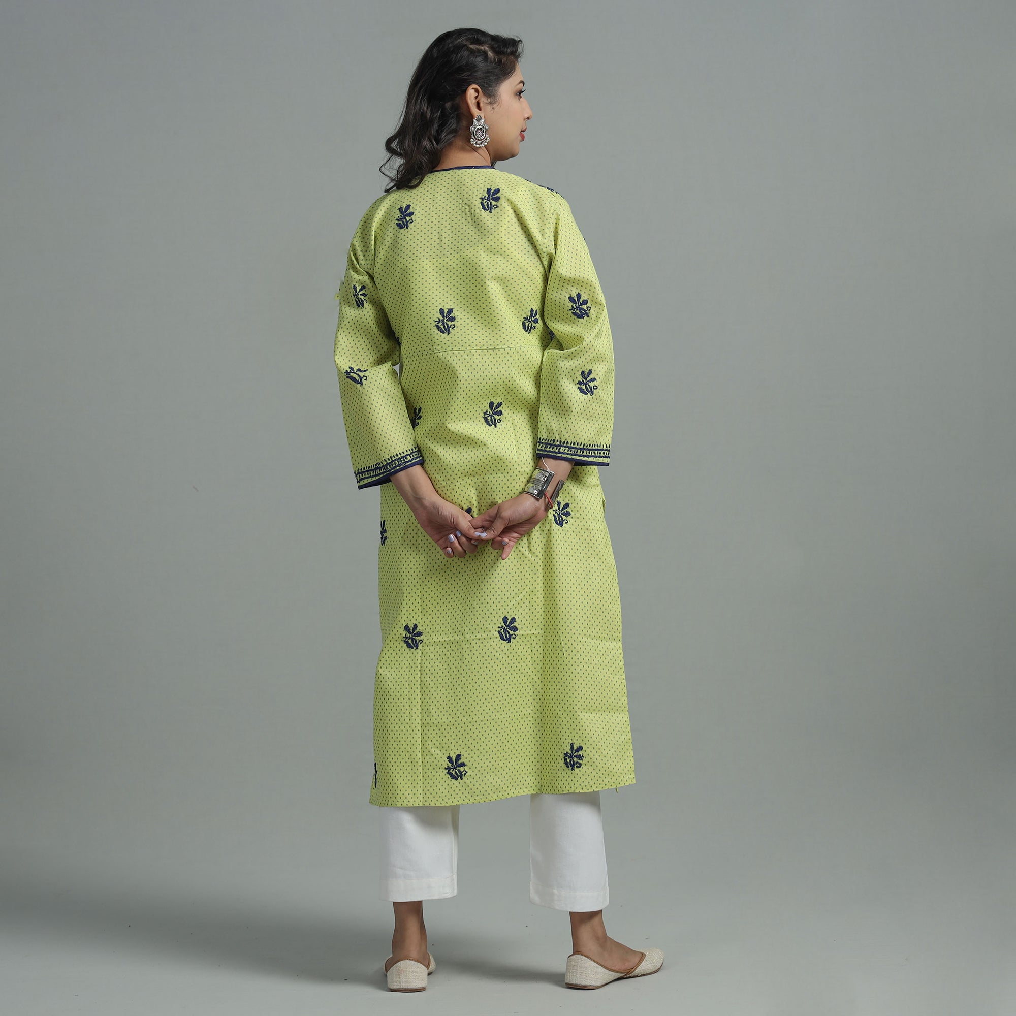 Intricate and artfully done lucknowi chikankari hand embroidery cotton kurta. Chikankari is a traditional textile decoration from Lucknow. It is very delicate and intricate hand embroidery work where thread is embroidered on cool, pastel shades of light cotton garments.