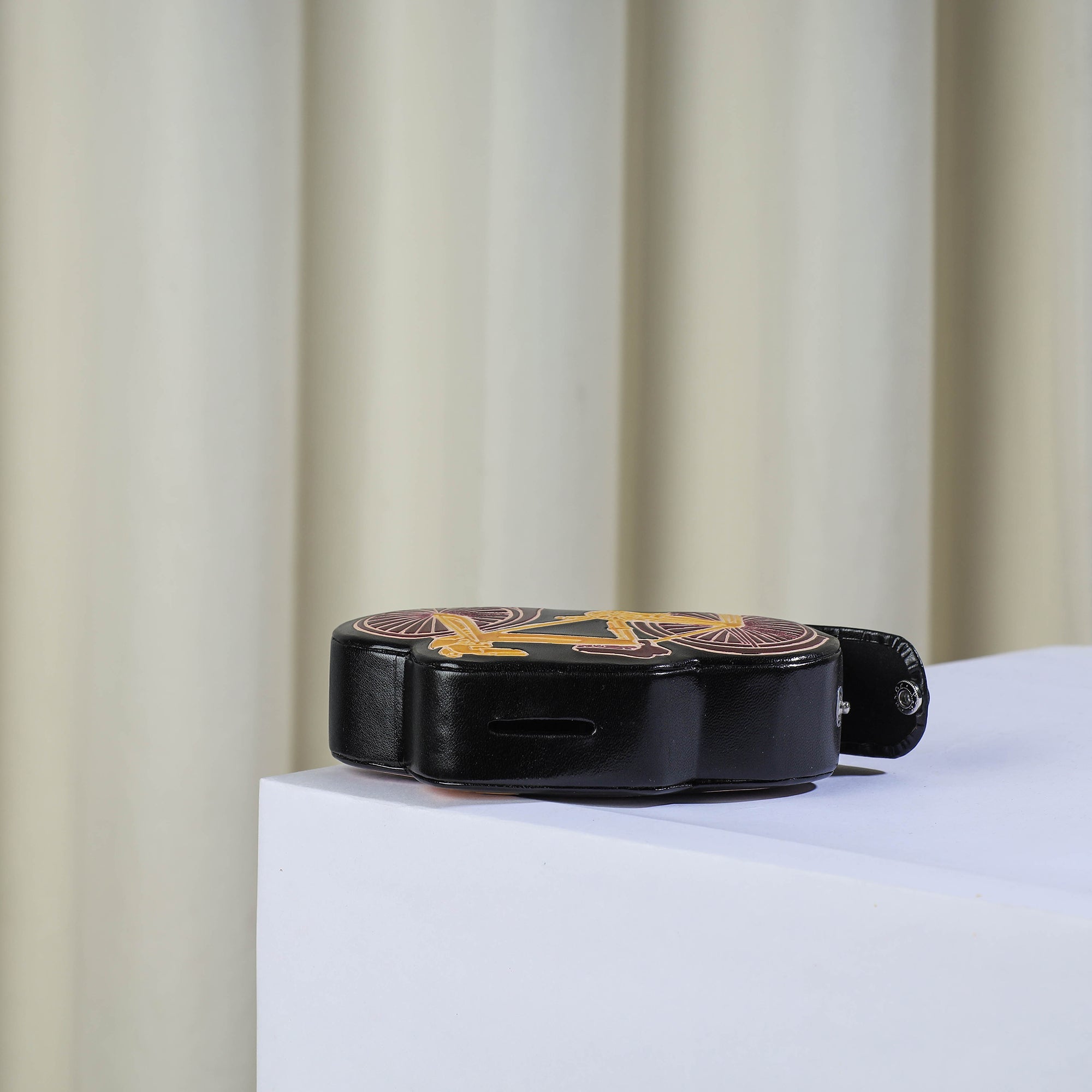 Handcrafted cycle vegetable tanned coin holder/money bank, made from cruelty free shanti leather. Has a hole with snap-button lock to remove the stored coins. Great gift for children and also as a decorative.